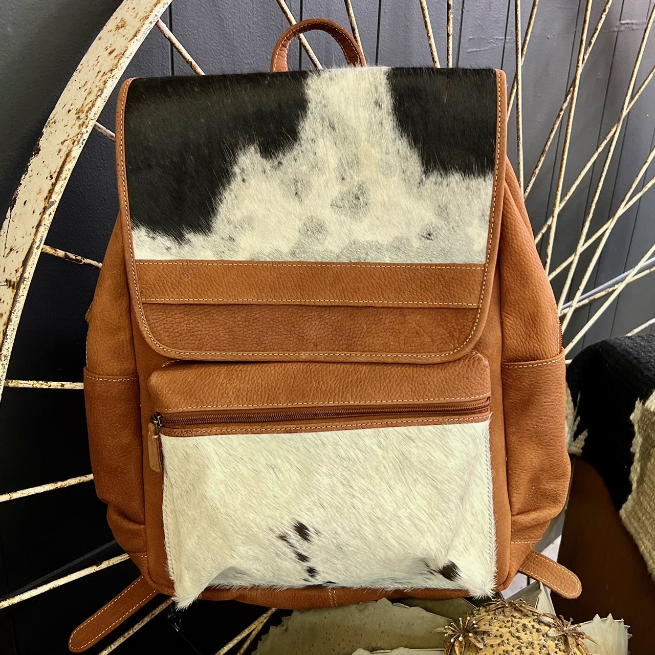 The Grand Canyon Backpack is a Beautiful Soft Leather Hair On Hide backpack that can used as a backpack or a laptop carrier. The backpack has so many pockets and room for multiple uses.
