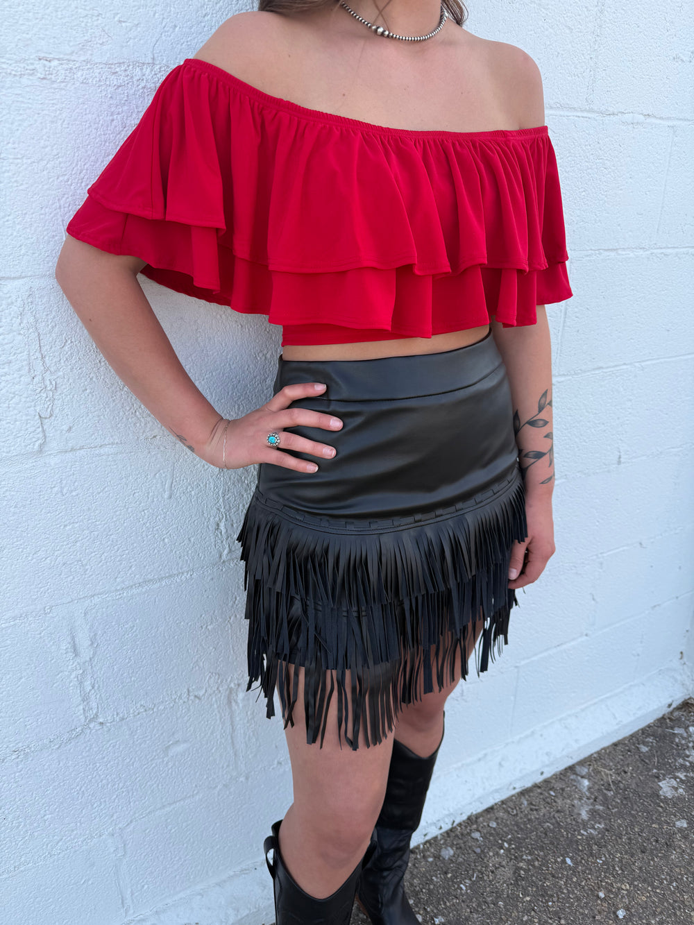 L&B Cherry Red Flowy Layered Ruffle Dress