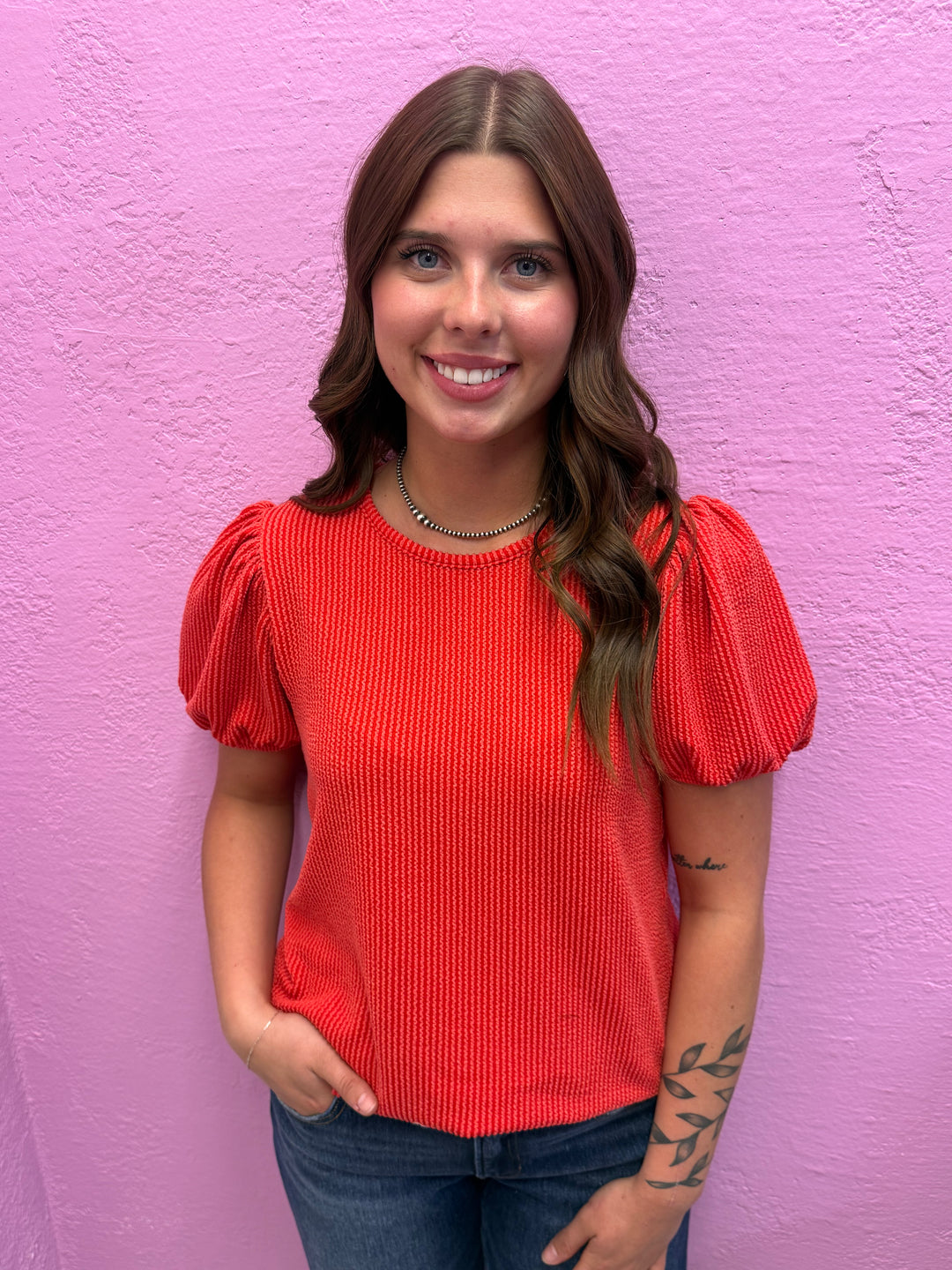 Zenana Ribbed Puff Sleeve Top - 8 Colors