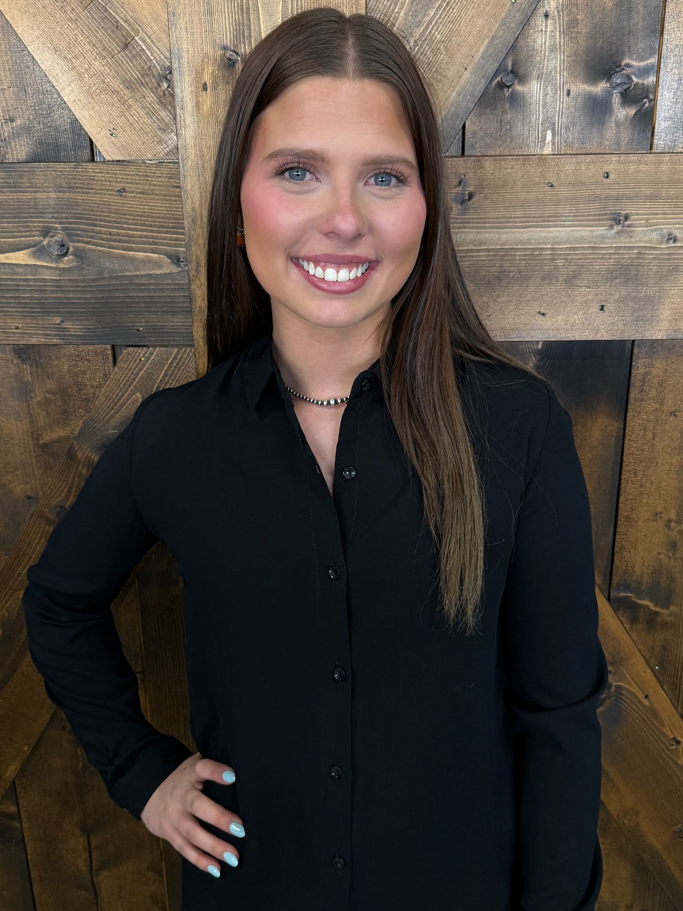 Elevate your everyday wardrobe with this versatile long sleeve button-up blouse! Crafted in a sleek slim fit that flatters your frame, this solid color essential transitions seamlessly from office to weekend plans. The classic button-up design pairs effortlessly with everything in your closet—dress it up with tailored trousers or keep it casual with your favorite jeans. Available in three gorgeous solid hues, you'll want to grab more than one. Perfect for anyone who loves timeless style with a modern edge!
