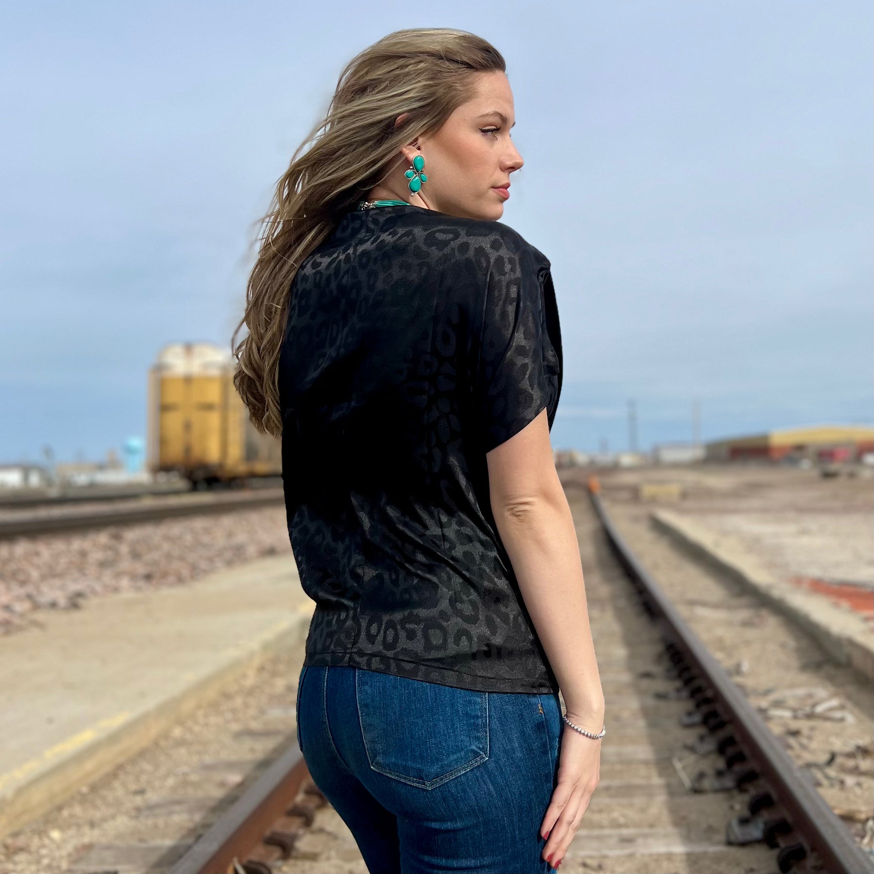 Black & leopard! This short sleeve top is a satin like material that is very lightweight! So perfect for this upcoming spring weather!