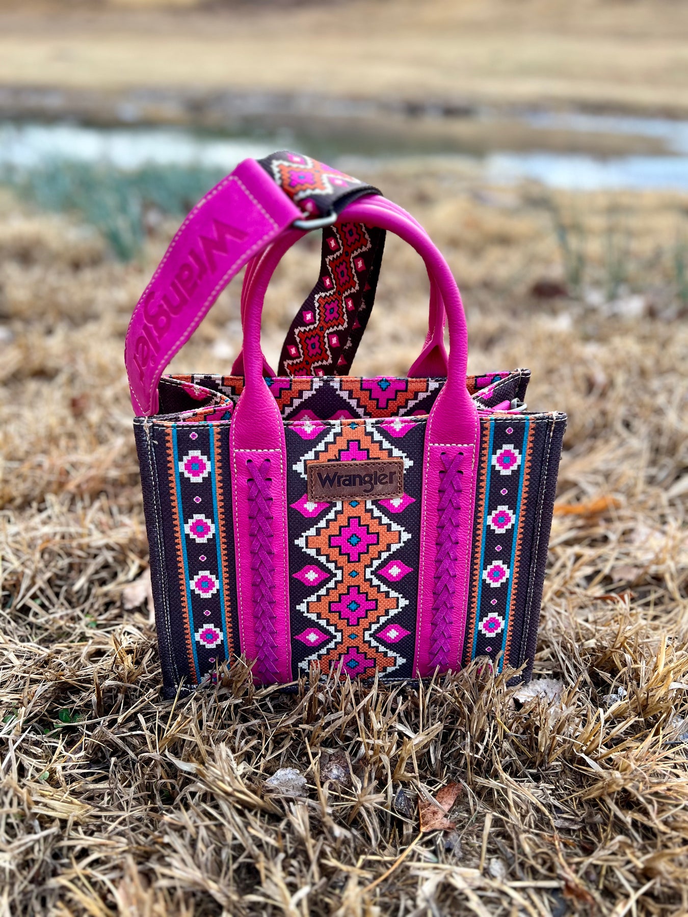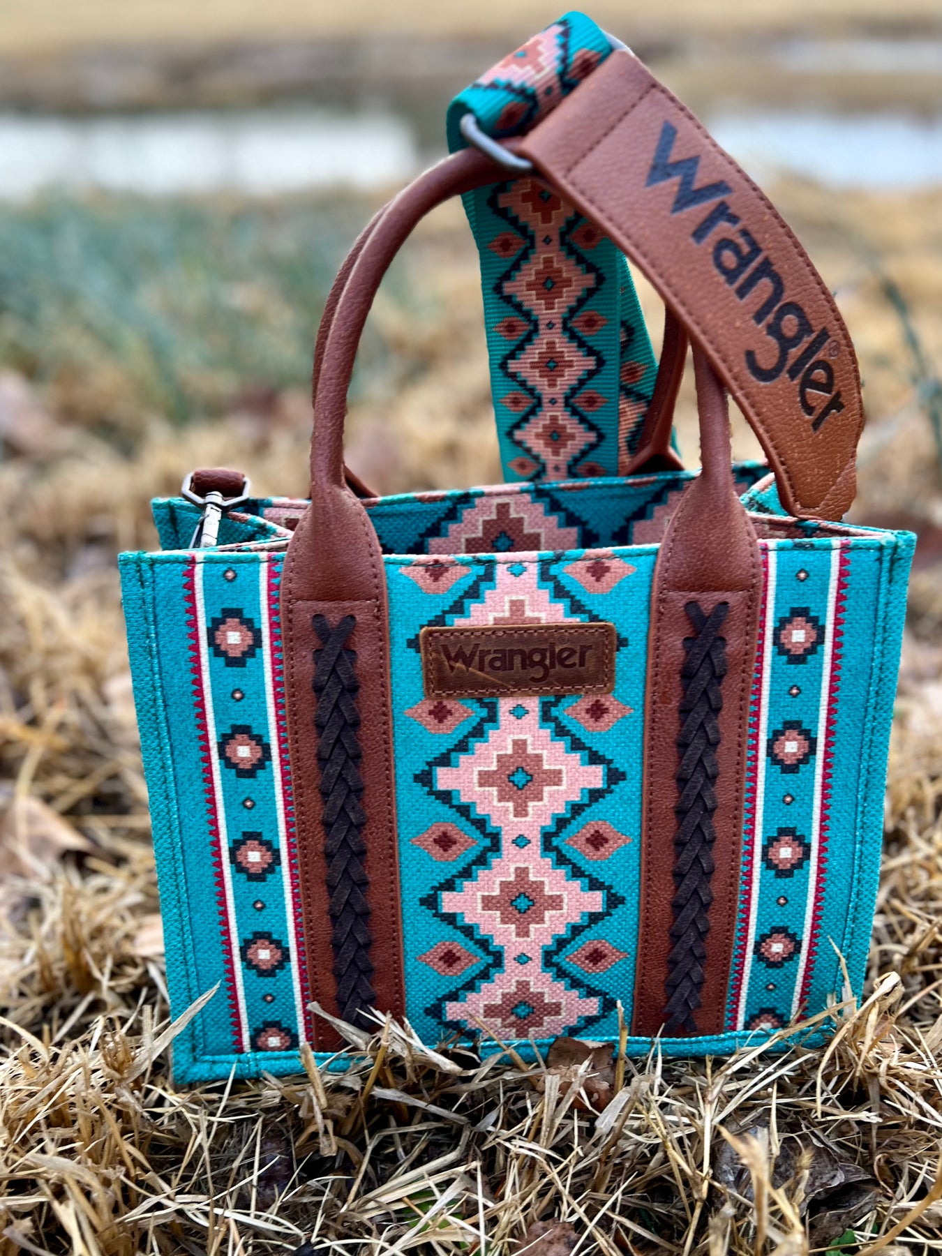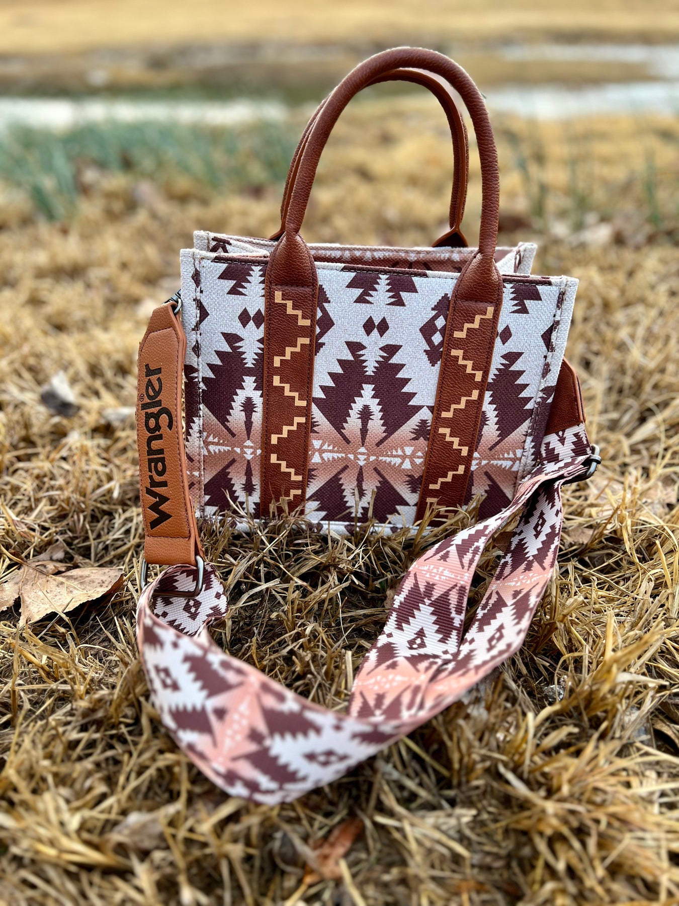 Wrangler fans rejoice! Get the iconic style you love with the Original Western Wrangler Bags, in 6 gorgeous designs and colors. Aztec designs and brown leather handles give you a timeless look, while adjustable and removable straps with an etched "Wrangler" detail provide fashionable versatility. Get yours now -- these bags are trending everywhere and in high demand, making them the perfect gift for any occasion.