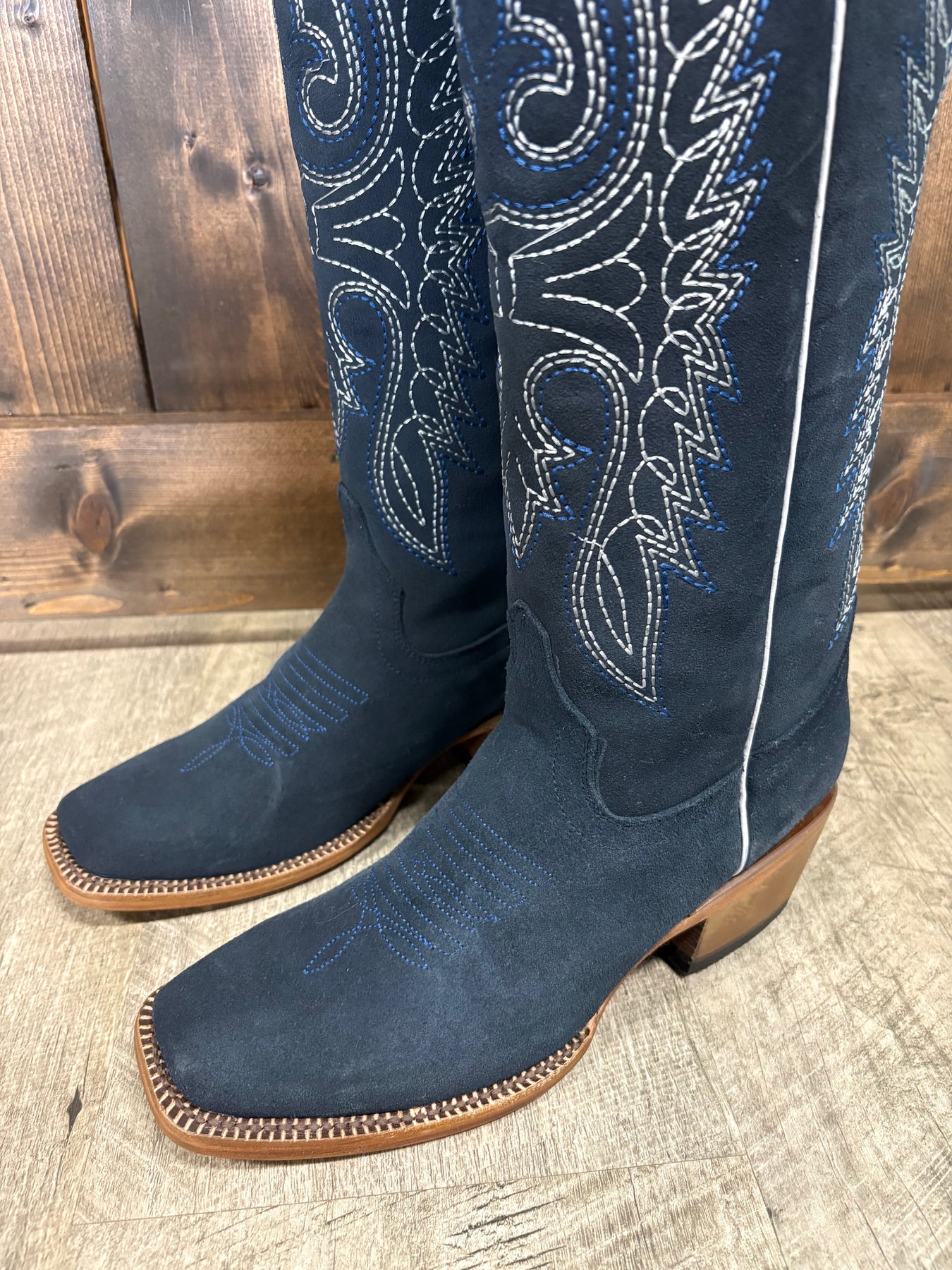 Step out with style in the Tanner Mark Women's Navy Blue Suede Boots. Featuring a 14" tall shaft with eye-catching boot stitch and a trendy square top, these boots combine classic cowgirl charm with a modern twist. Easy to pull on and built for comfort, they’re perfect for adding a splash of bold color to your western-inspired looks. Perfect for dancing, riding, or just turning heads wherever you go!