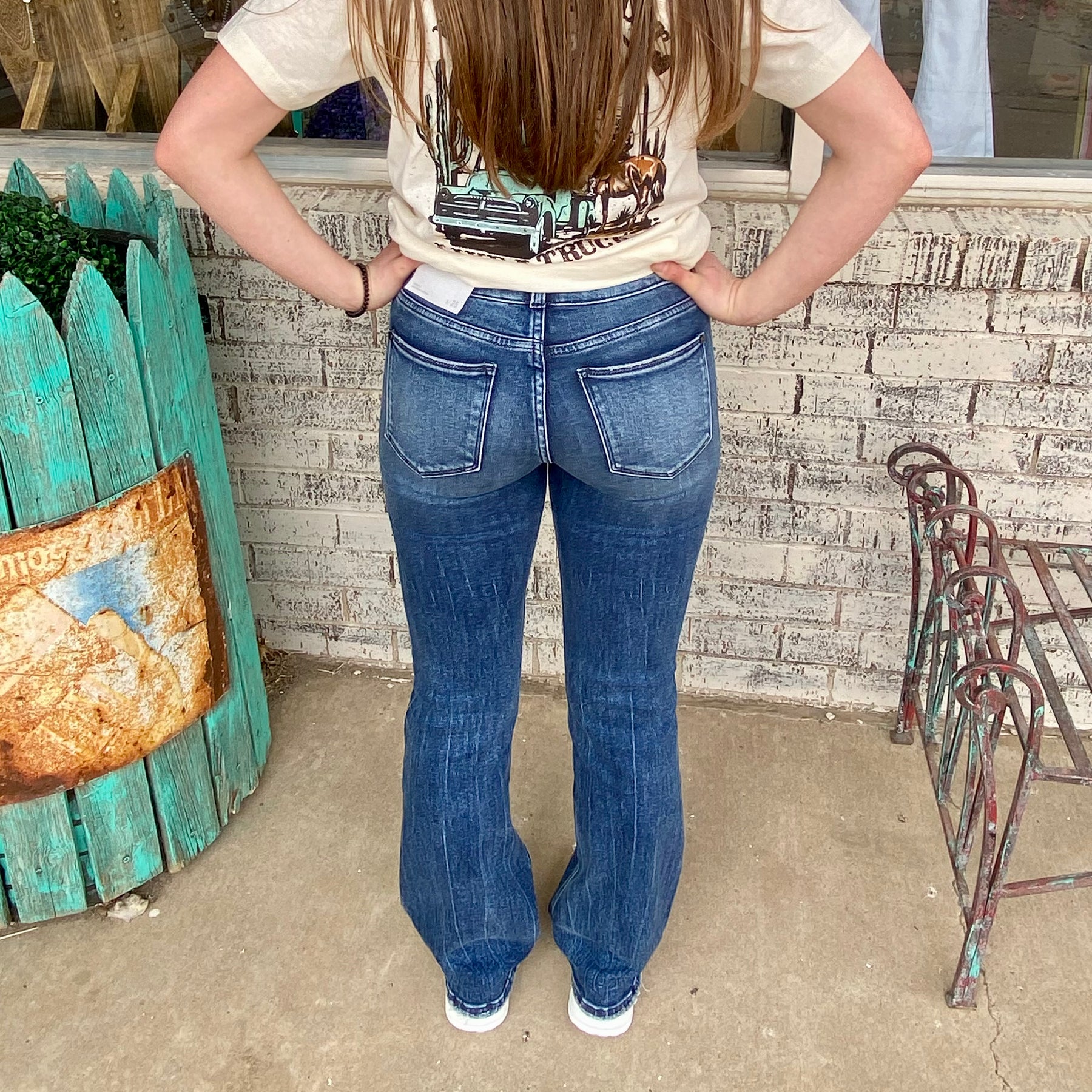 Dark Washed High-Rise Classic Bootcut Jeans | gussieduponline