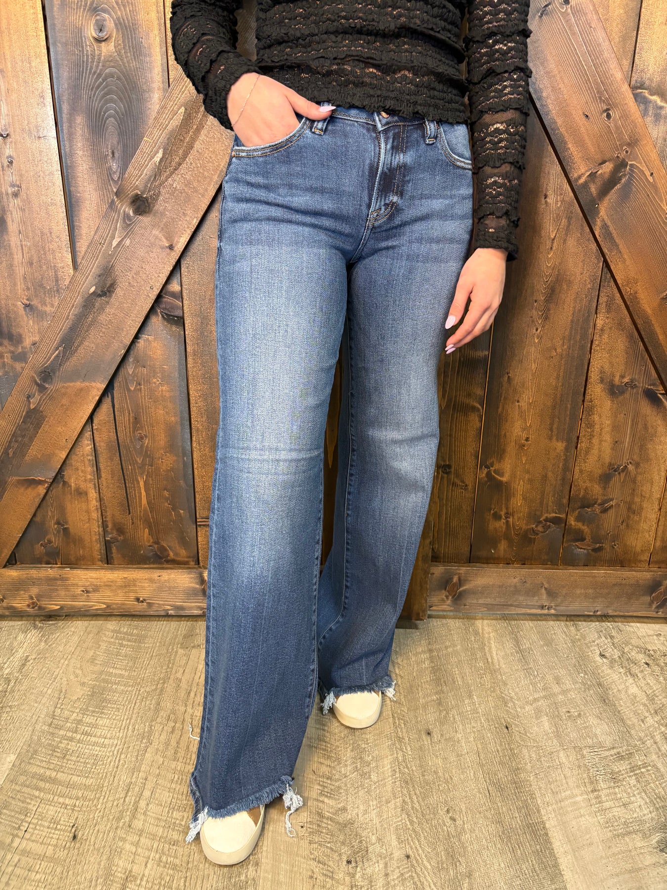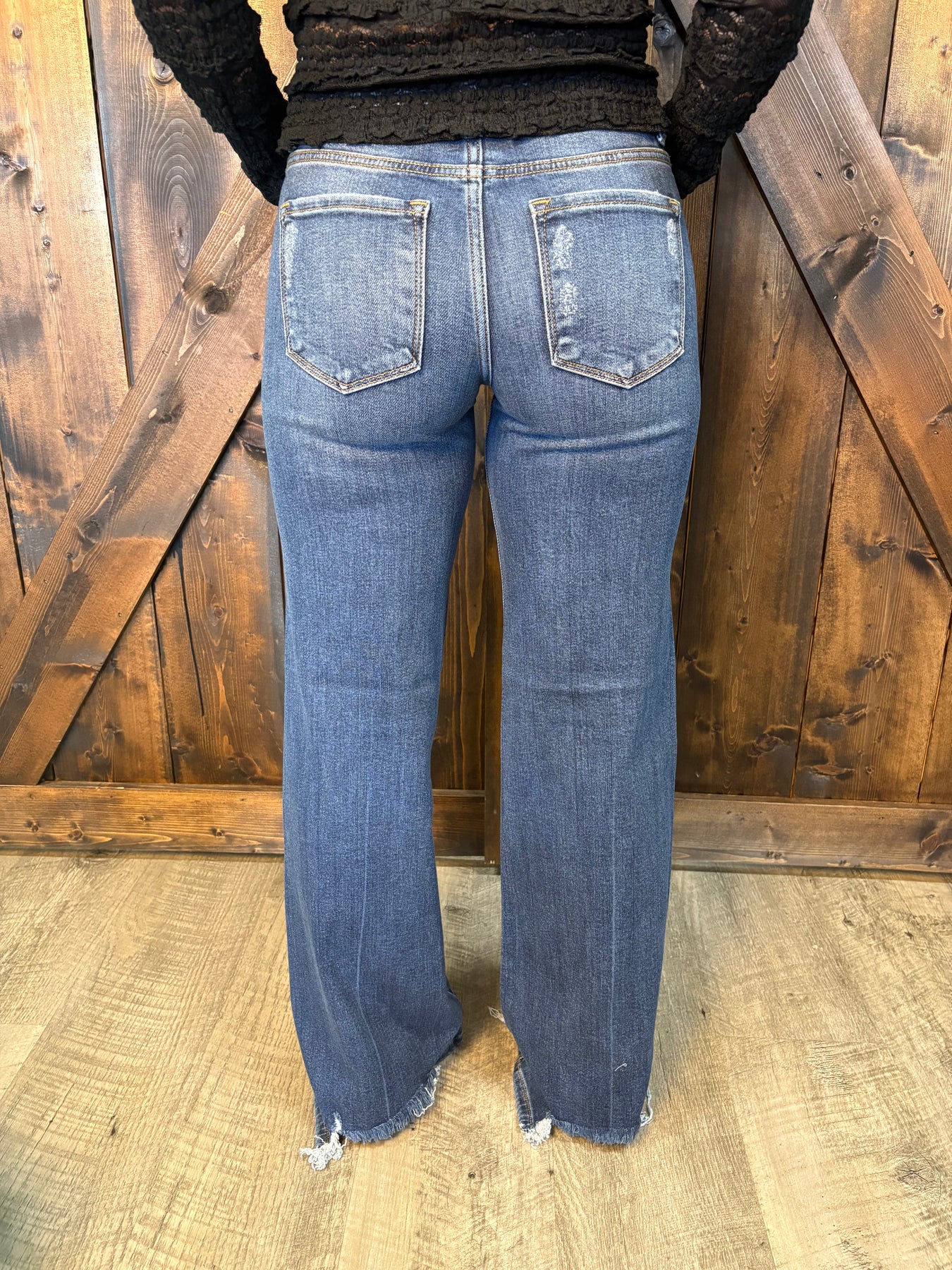 Risen Mid Rise Dark Wash Wide Leg Jeans I Gussied Up Online Boutique