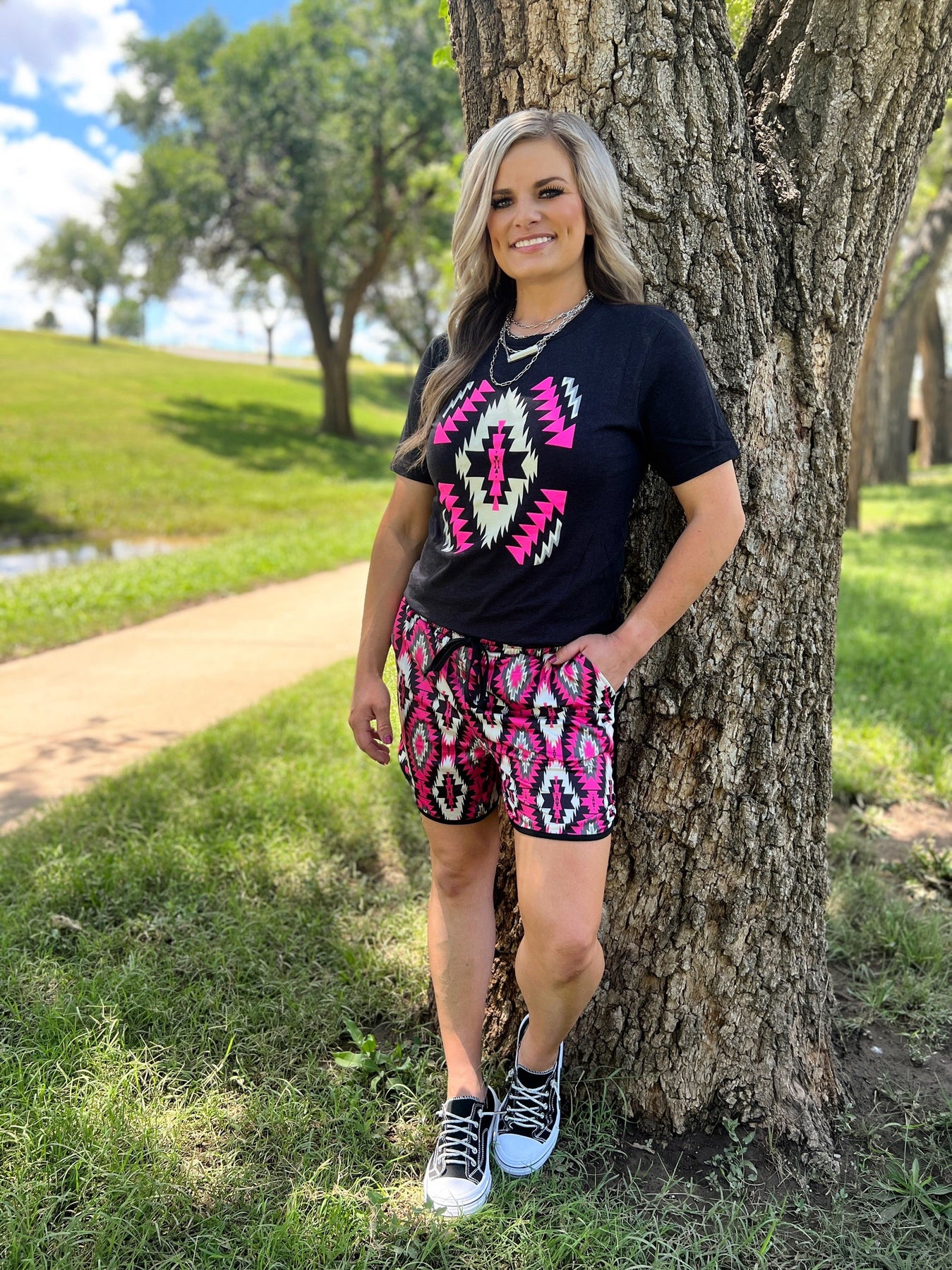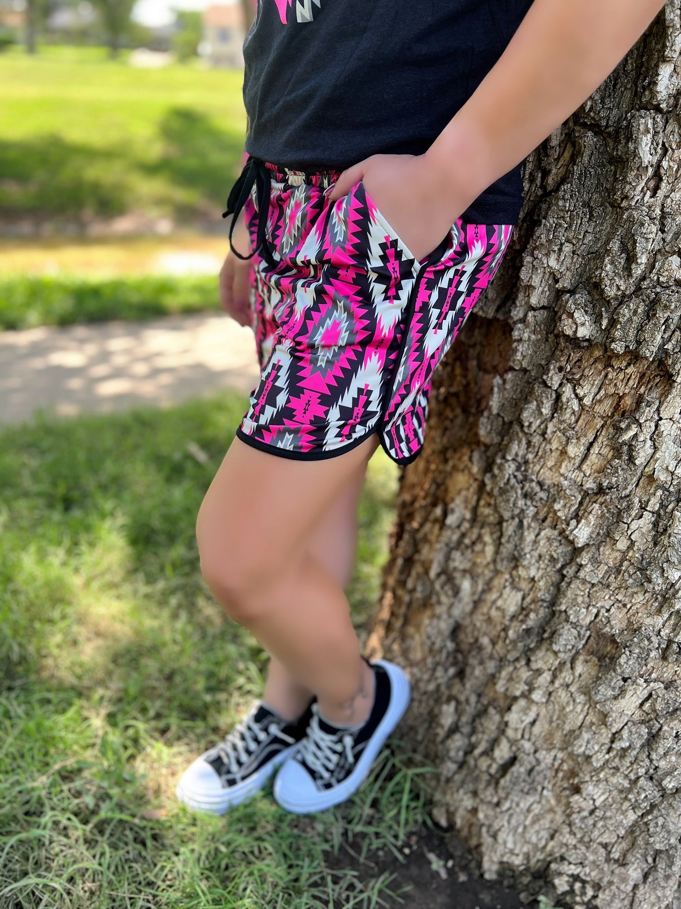 Get ready to hit the road in style with our Road To You Long Shorts. These playful pink, black, and white aztec shorts will add a quirky touch to your wardrobe. Perfect for a road trip or a day out, these shorts will have you feeling confident and fun. Hit the road in style with these must-have shorts!