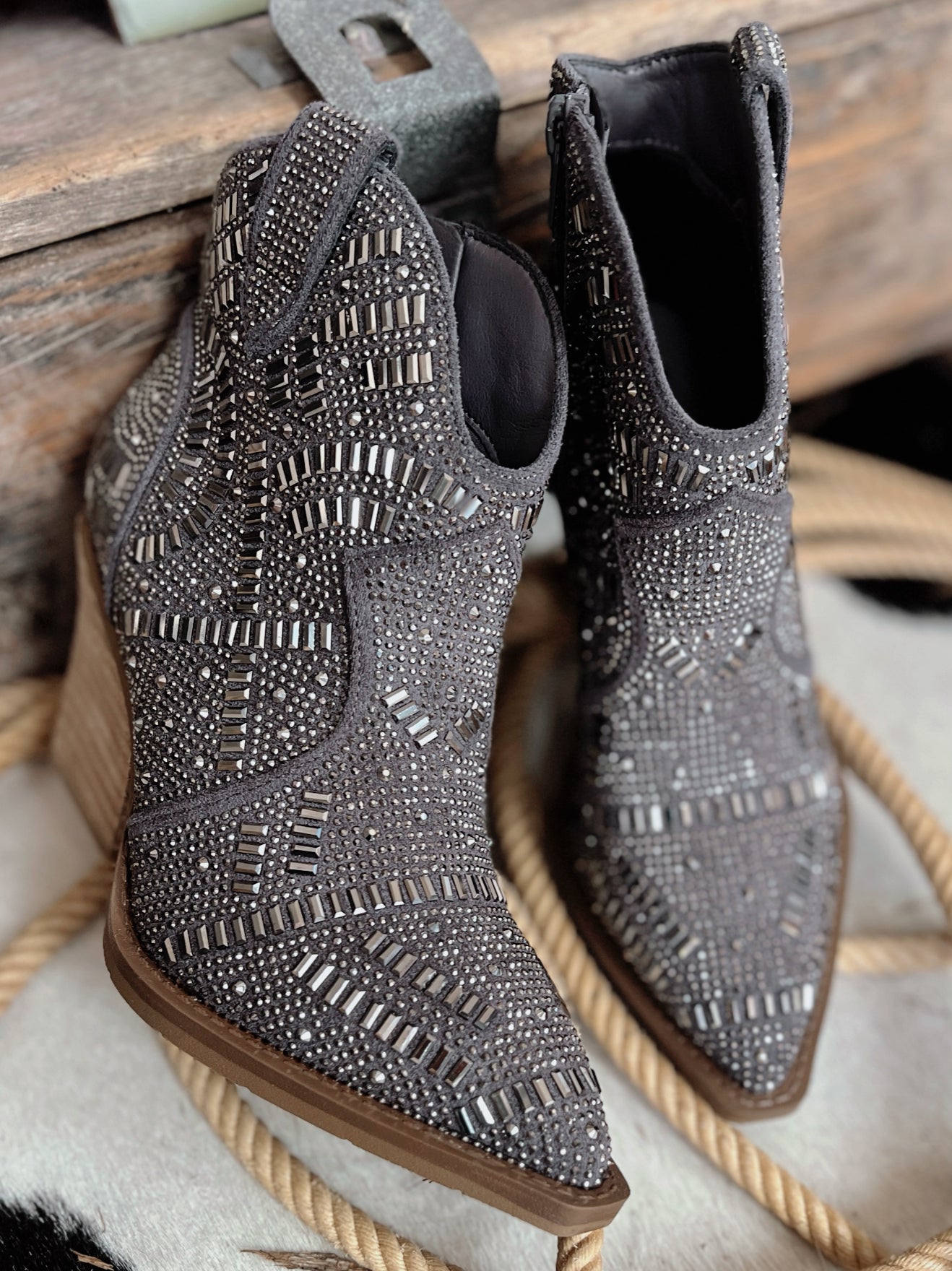 The One Day Grey Maze of Life Booties are your shortcut to style! With a 3" heel, pointed toe and grey rhinestone maze design details, you'll strut in confidence and find your way through life with ease. Plus, the inside zipper means you won't find yourself endlessly searching for a way out. Look great, feel great!