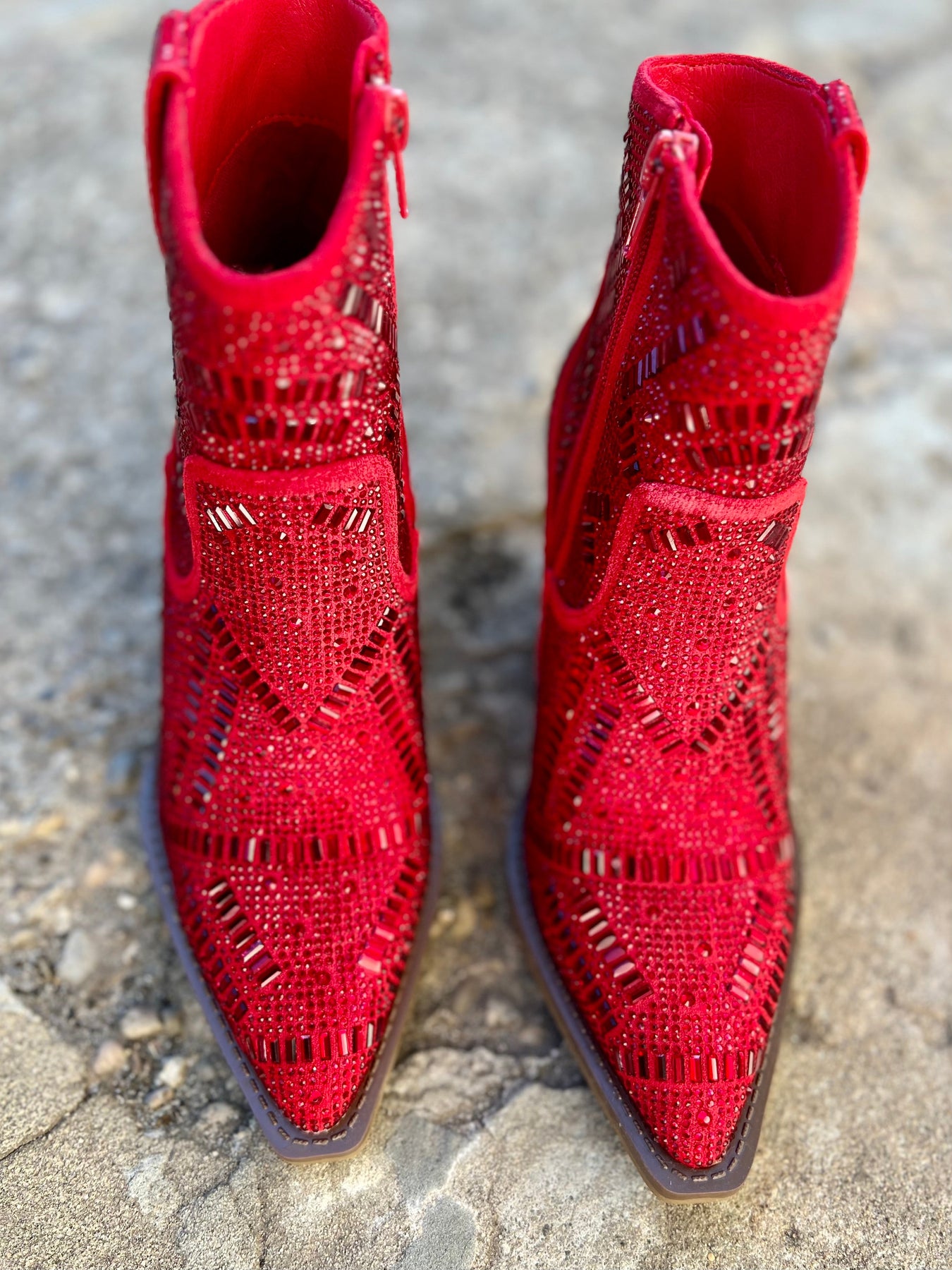 The Red Maze of Life Booties are your shortcut to style! With a 3" heel, pointed toe and red rhinestone maze design details, you'll strut in confidence and find your way through life with ease. Plus, the inside zipper means you won't find yourself endlessly searching for a way out. Look great, feel great!