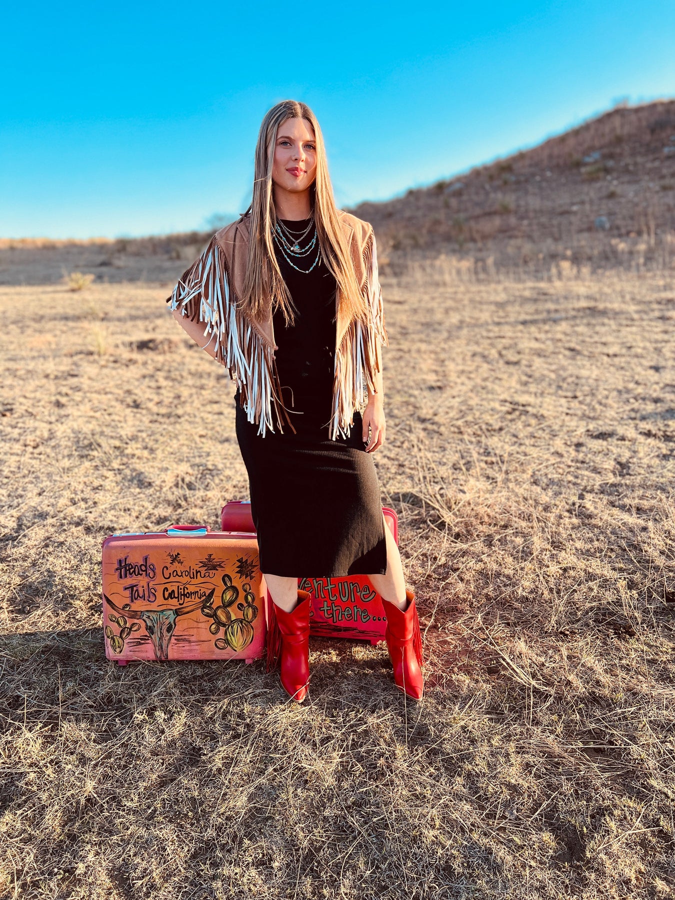 Step out in style with the Don't Let The Door Hit Ya Dress! This sleek and form-fitting black body-con dress is perfect for any casual occasion. With a trendy side slit, ribbed texture, and sleeveless design, this dress will have you looking and feeling confident. Support a small business and elevate your wardrobe with this must-have piece from our women's boutique.