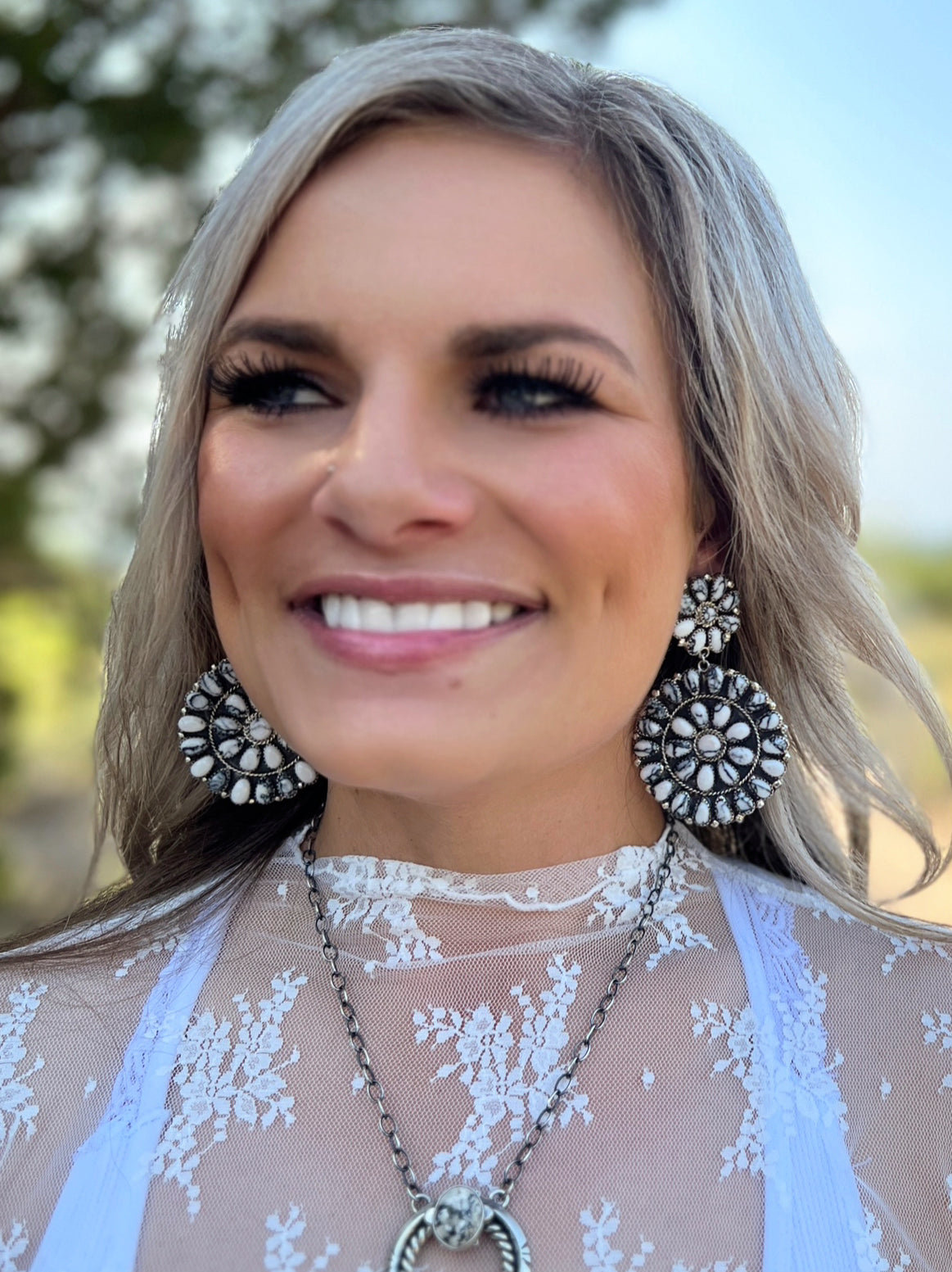 These Bilaganna Navajo Sterling Silver Earrings add a special touch of class to any ensemble. Handcrafted by Native Americans using genuine Navajo Sterling Silver, they feature beautiful Wild Horse Stones and a unique concho design. Perfect for any occasion.