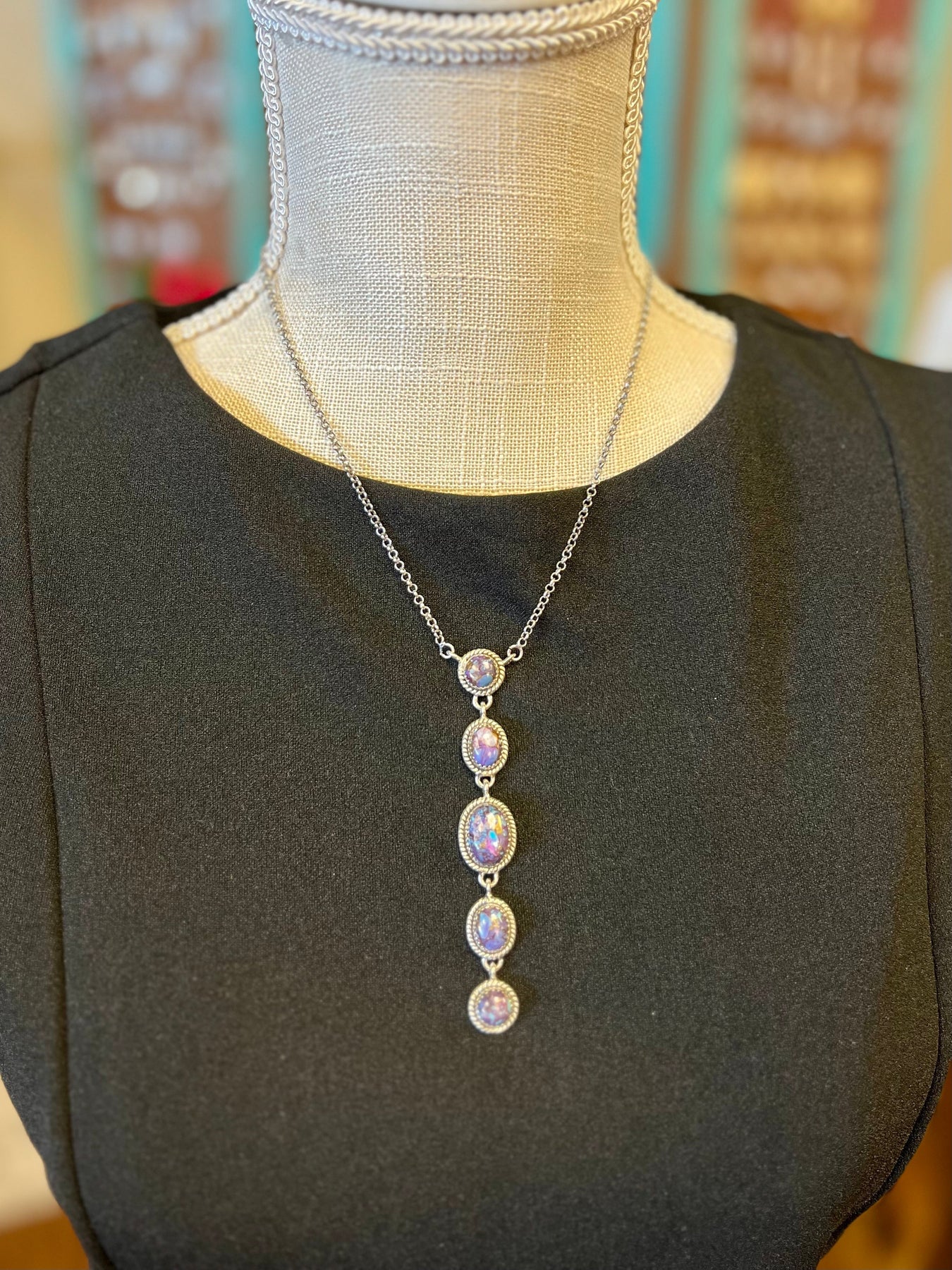 This exclusive Purple Rain Dangling Necklace is crafted with genuine sterling silver and set with genuine purple Mojave stones for a luxurious look. An 8" chain holds a 3" dangle pendant, adjustable with a 2" claw clasp creating the perfect fit. Elevate your style with this elegant and tasteful necklace.