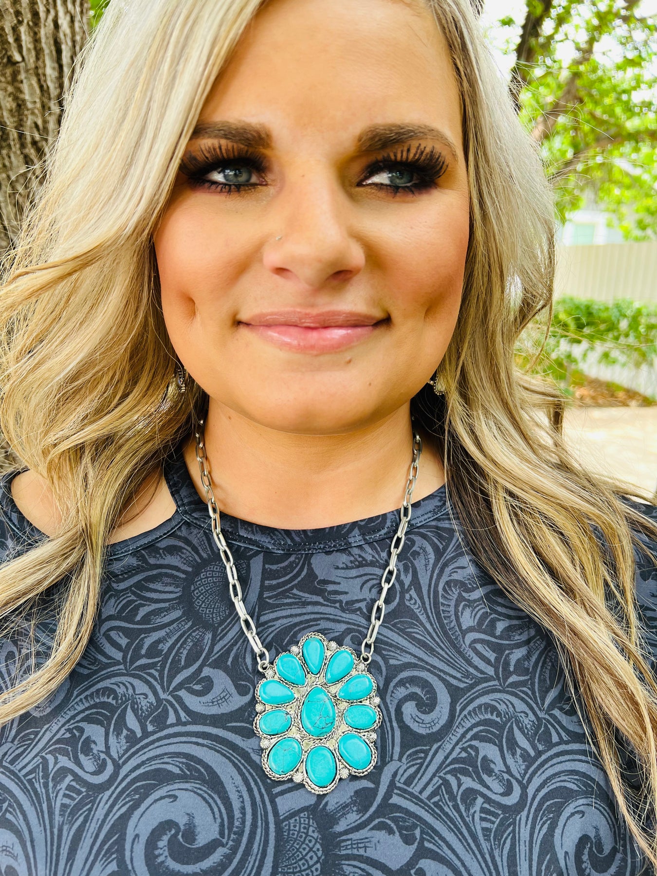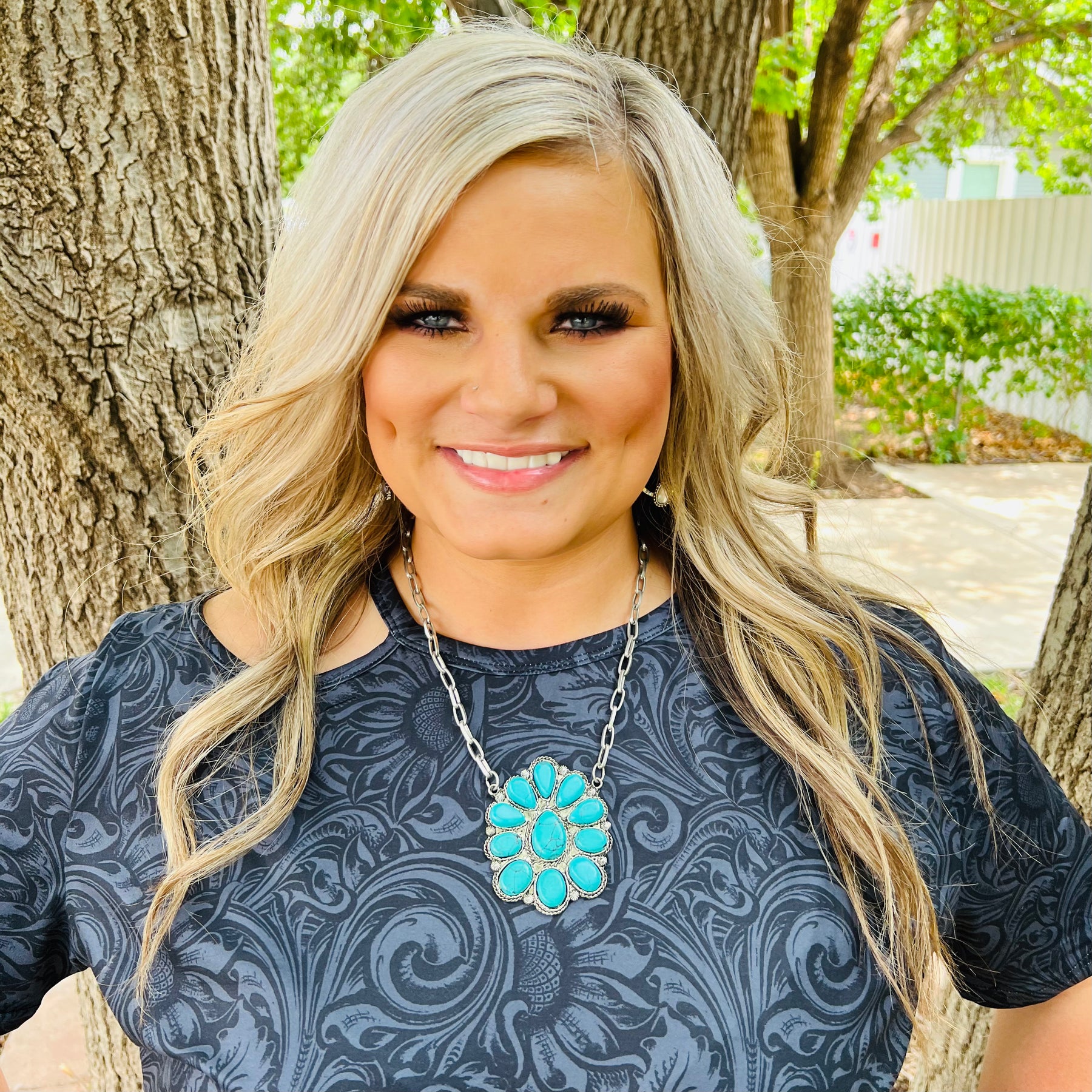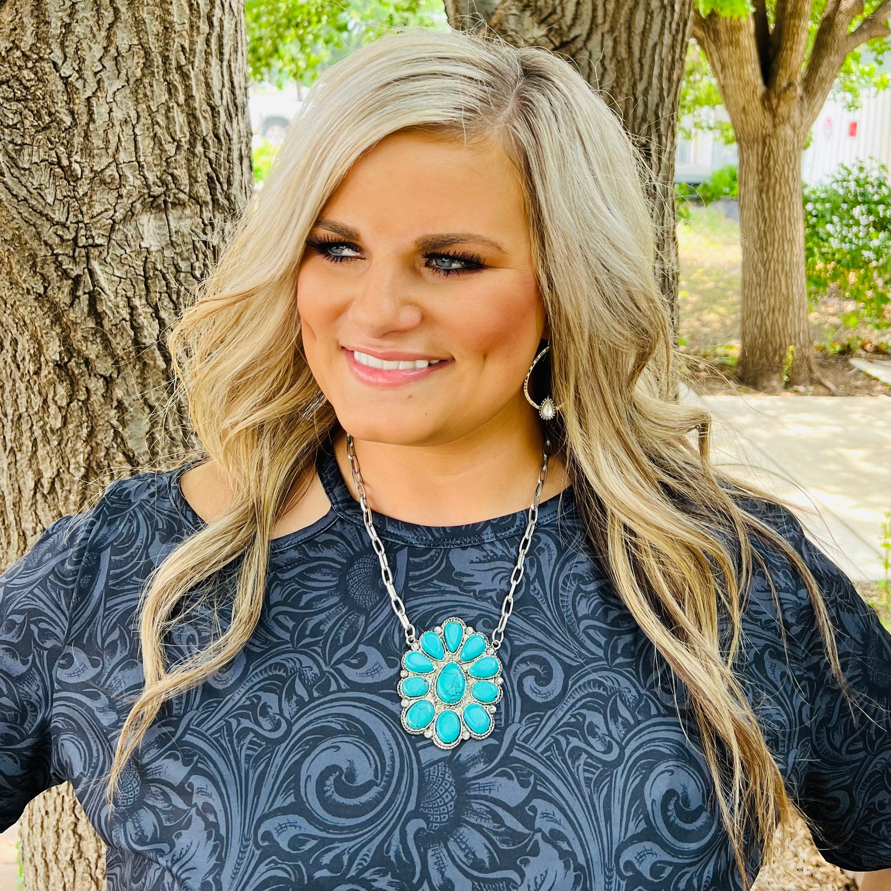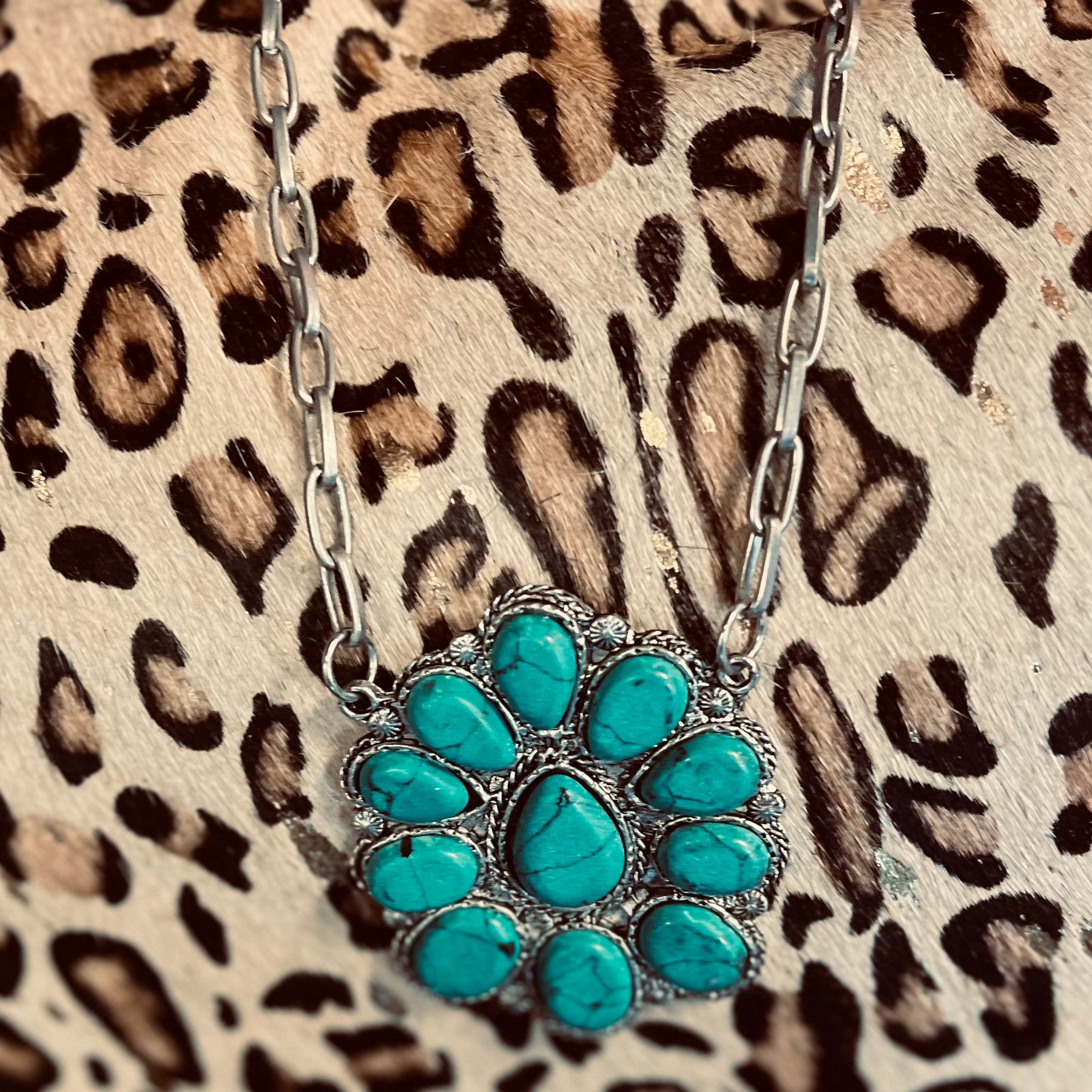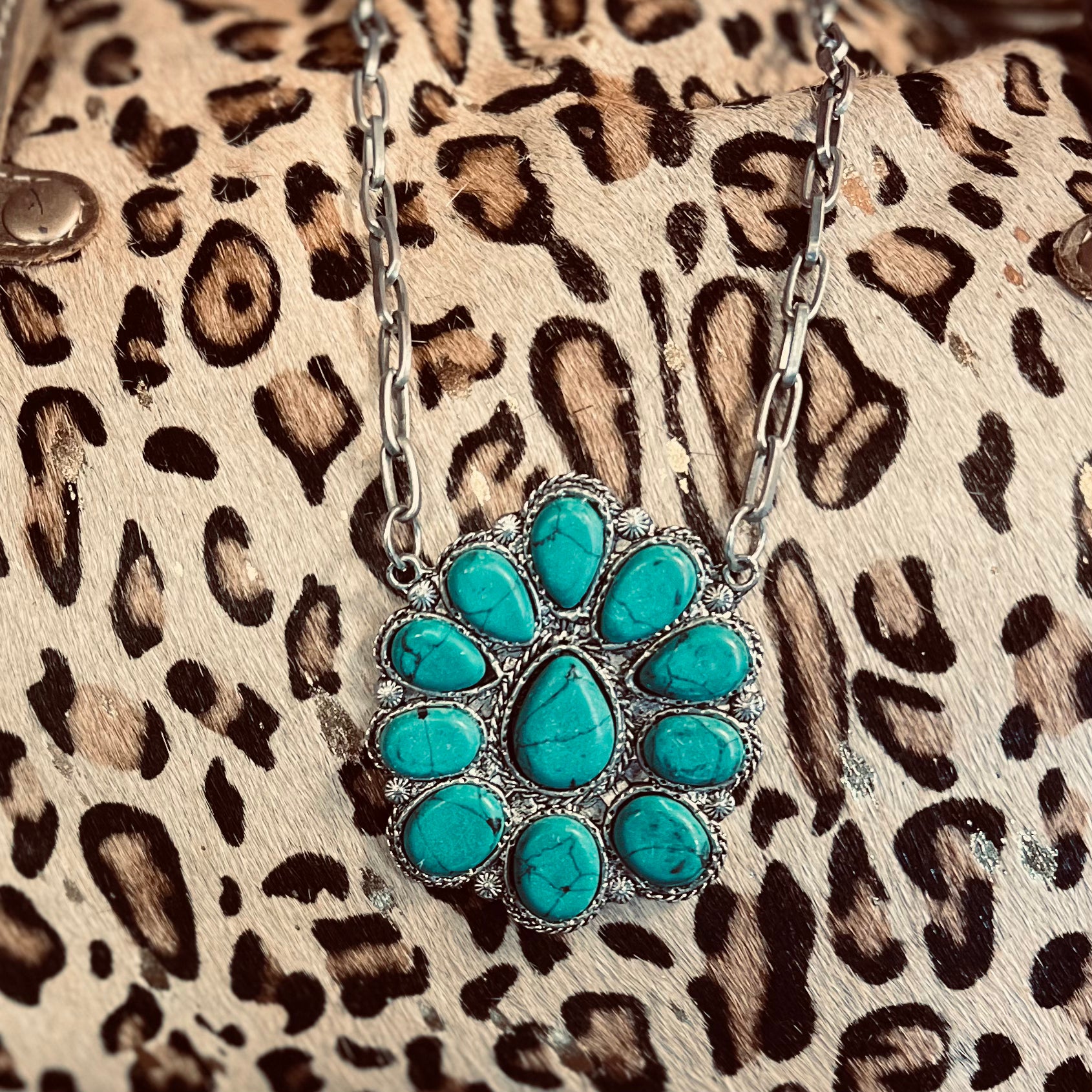 Boast your boho style with The Okley Necklace! Crafted with a turquoise blossom and shimmery chain, this beauty will have 'em doin' a double-take! So go ahead, flaunt it β€” you're sure to make a statement wherever you go! (And when the compliments come, graciously accept 'em, okley-dokley?)