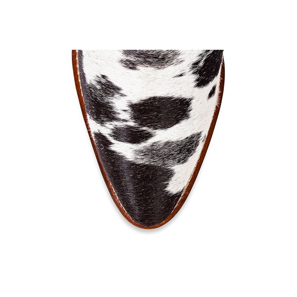 Genuine cowhide used. Variations in spots and color are natural. Each pair is unique. Embrace the authenticity.