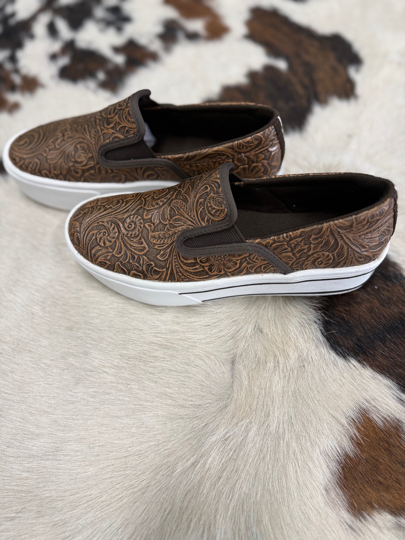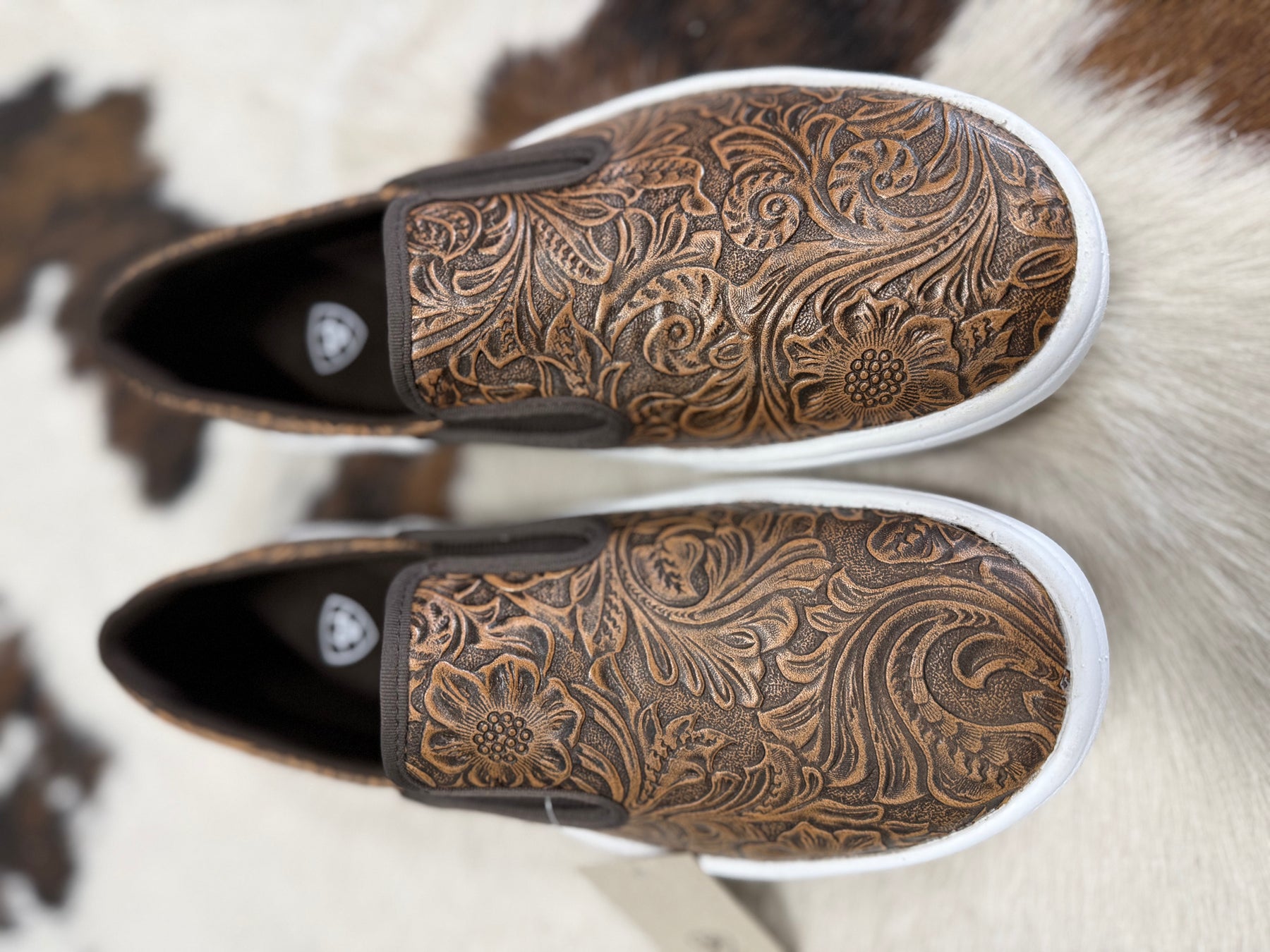 Women's Ariat Skylar Brown Embossed Slip On Shoes  I Gussied Up Online Boutique