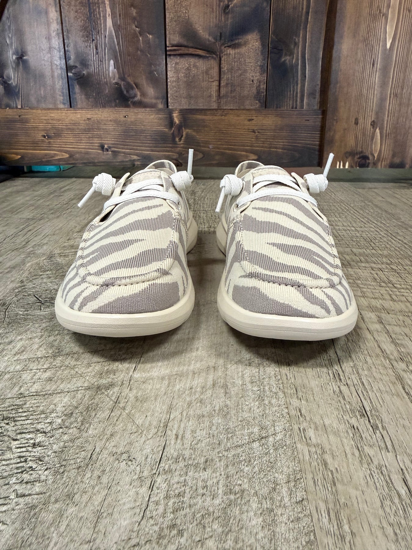 Step into style with the Ariat Women's Hilo Khaki Tiger Knit Sneakers—where comfort meets wild flair. These slip-on beauties feature a striking khaki and cream tiger stripe pattern that turns heads wherever you go. Built with Ariat's signature comfort footbed, they're designed to keep your feet happy all day long. Perfect for casual outings, weekend adventures, or whenever you want to add a playful pop of personality to your look. Slip them on and strut with confidence!