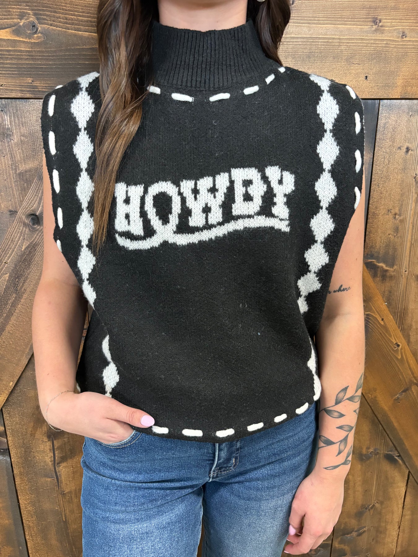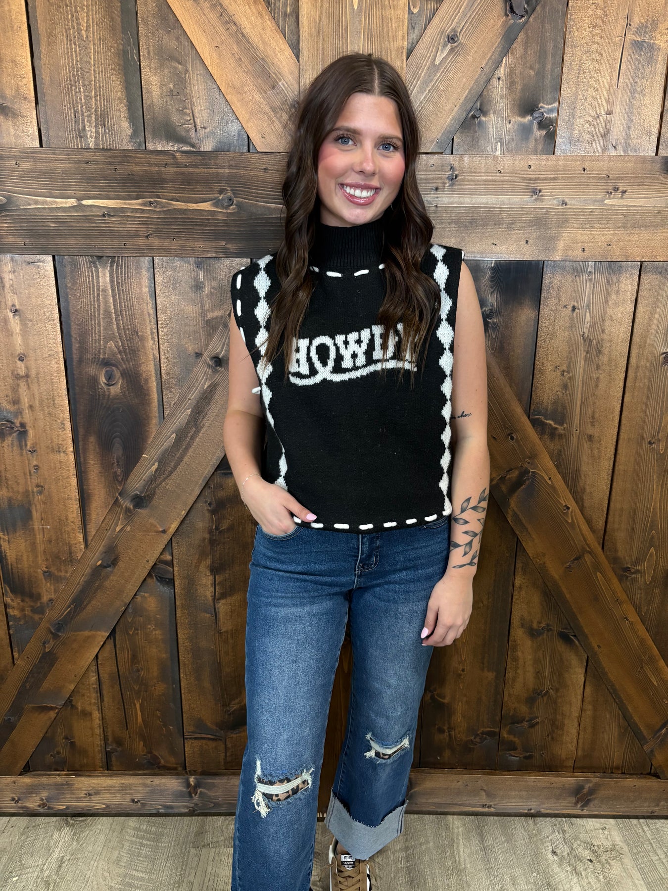 L&B Black & Ivory Howdy Stitched Sweater Vest  I Gussied Up Online Boutique