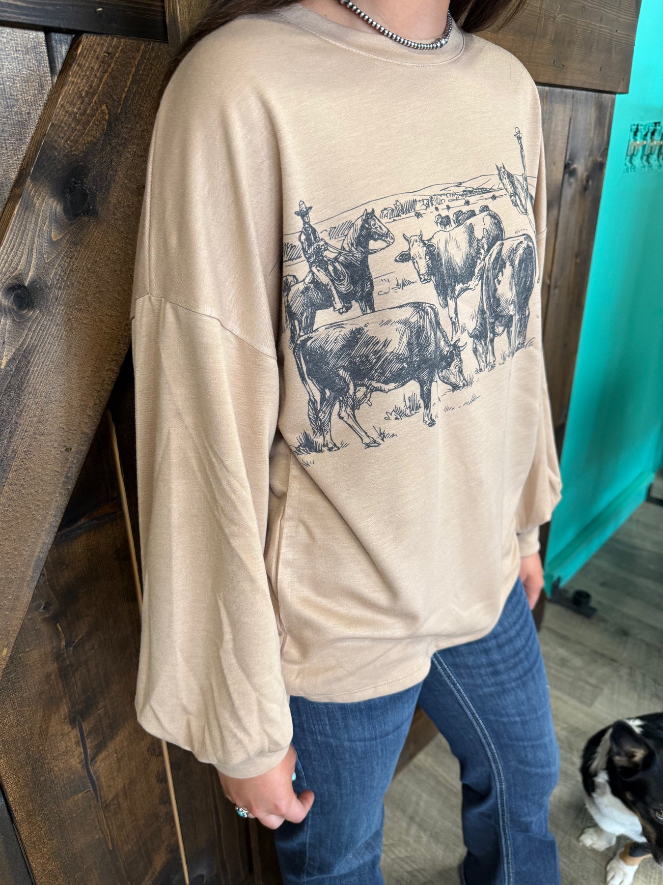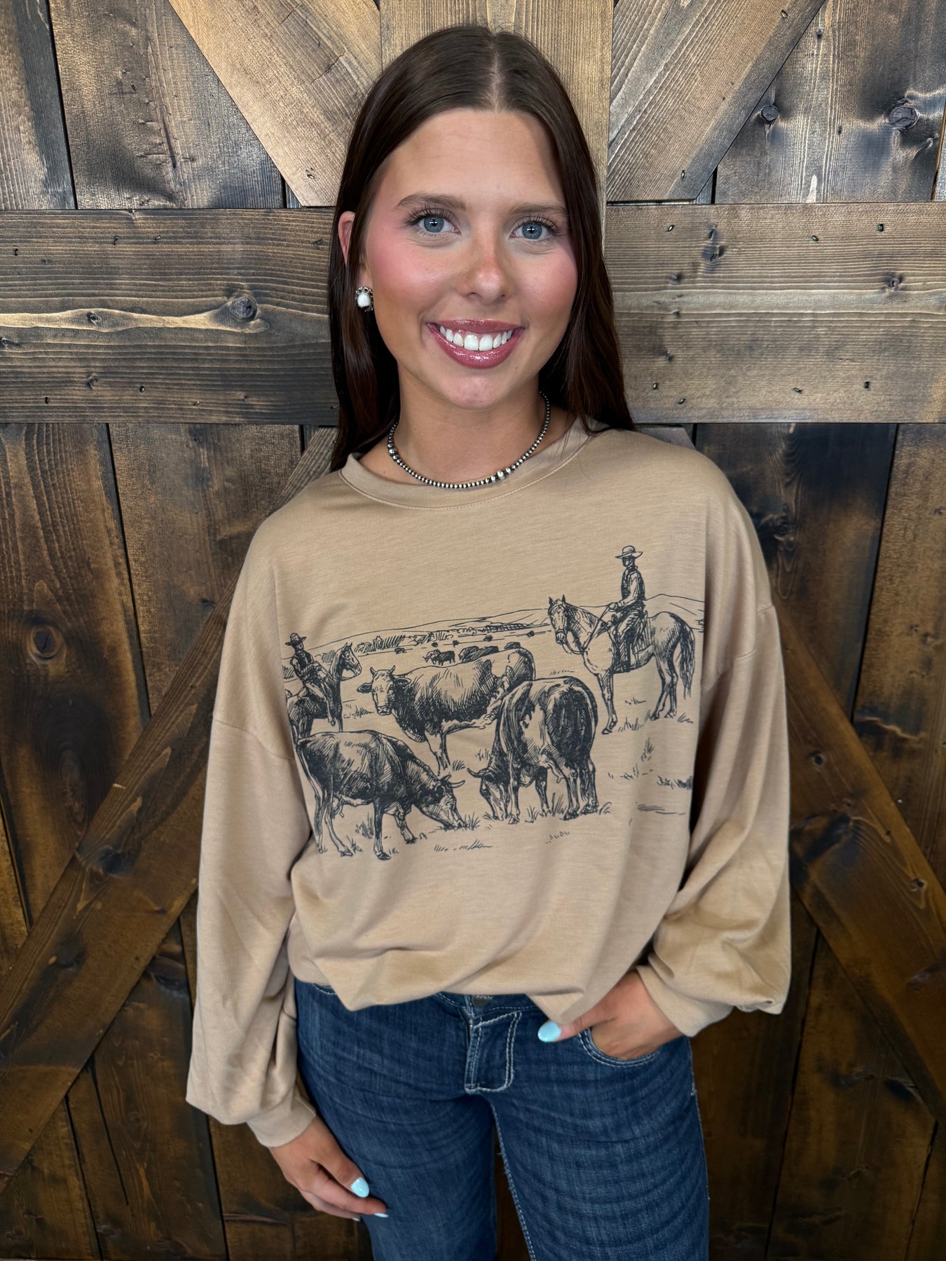 Camel Western Print Graphic Relaxed Sweatshirt I Gussied Up Online Boutique