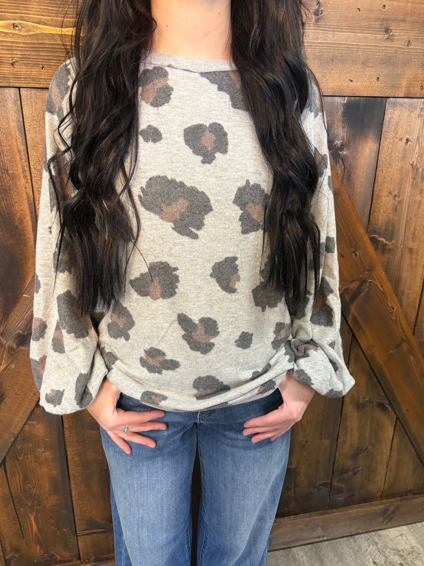 Grey Leopard Print Bubble Sleeve Top I Gussied Up Online Boutique