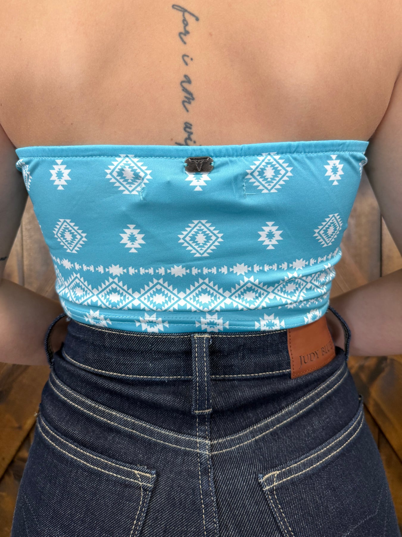 L&B Turquoise & Ivory Aztec Bandana Corset Top