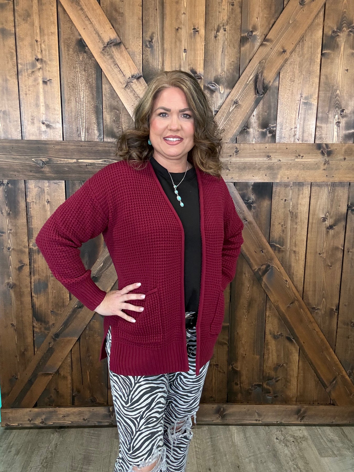 Zenana Low Gauge Waffle Knit Open Cardigan Sweater- 5 Colors I Gussied Up Online Boutique