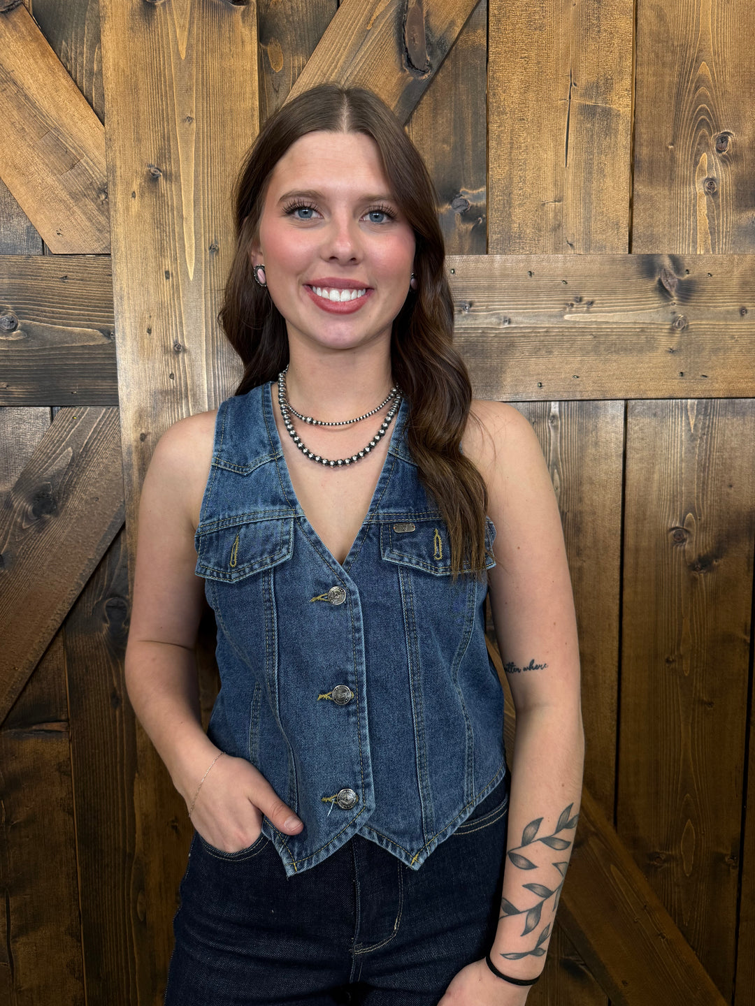 L&B Ivory& Blue Boot Stitch Bandana Corset Top