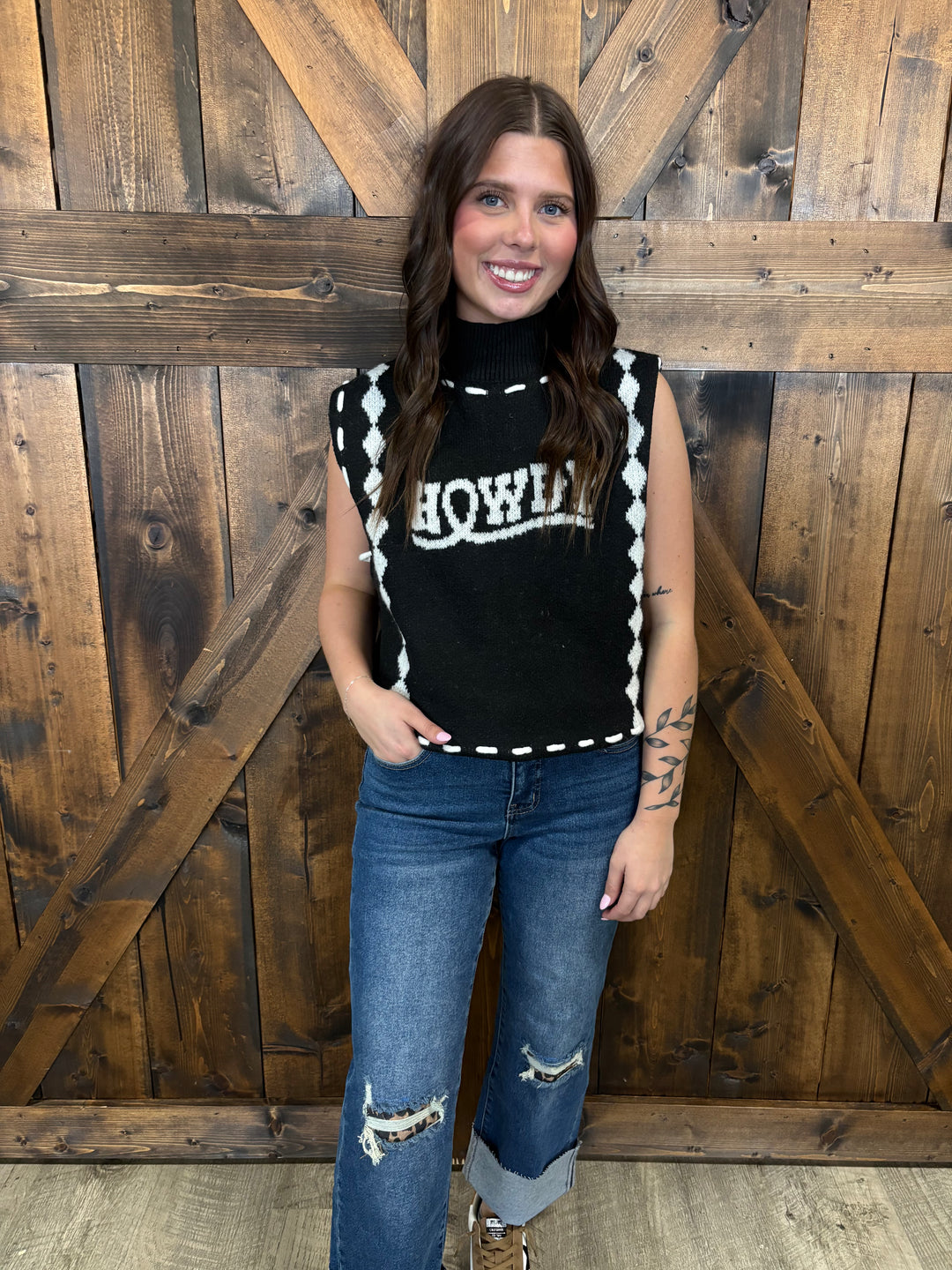 L&B Black & Ivory Howdy Stitched Sweater Vest