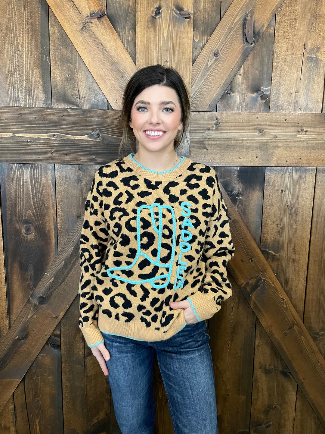 L&B Brown Leopard Knit Saddle Up Stitched Sweater