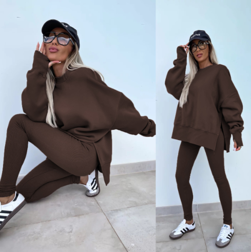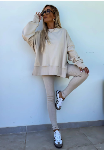ROUND NECK SWEATSHIRT WITH SIDE SLIT: Enjoy a chic design with side slits that provide flair and freedom of movement, perfect for casual outings.