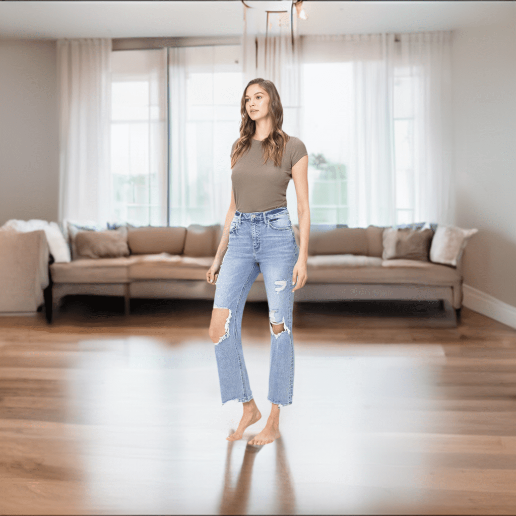 "Get ready to rock the 90's with our Rich Straight Jeans. Made with high-quality materials (93% Cotton 5% Polyester 2% Spandex), these distressed jeans will give you ultimate comfort and style. Channel your inner grunge with this timeless look. (Warning: may cause nostalgia overload!)"