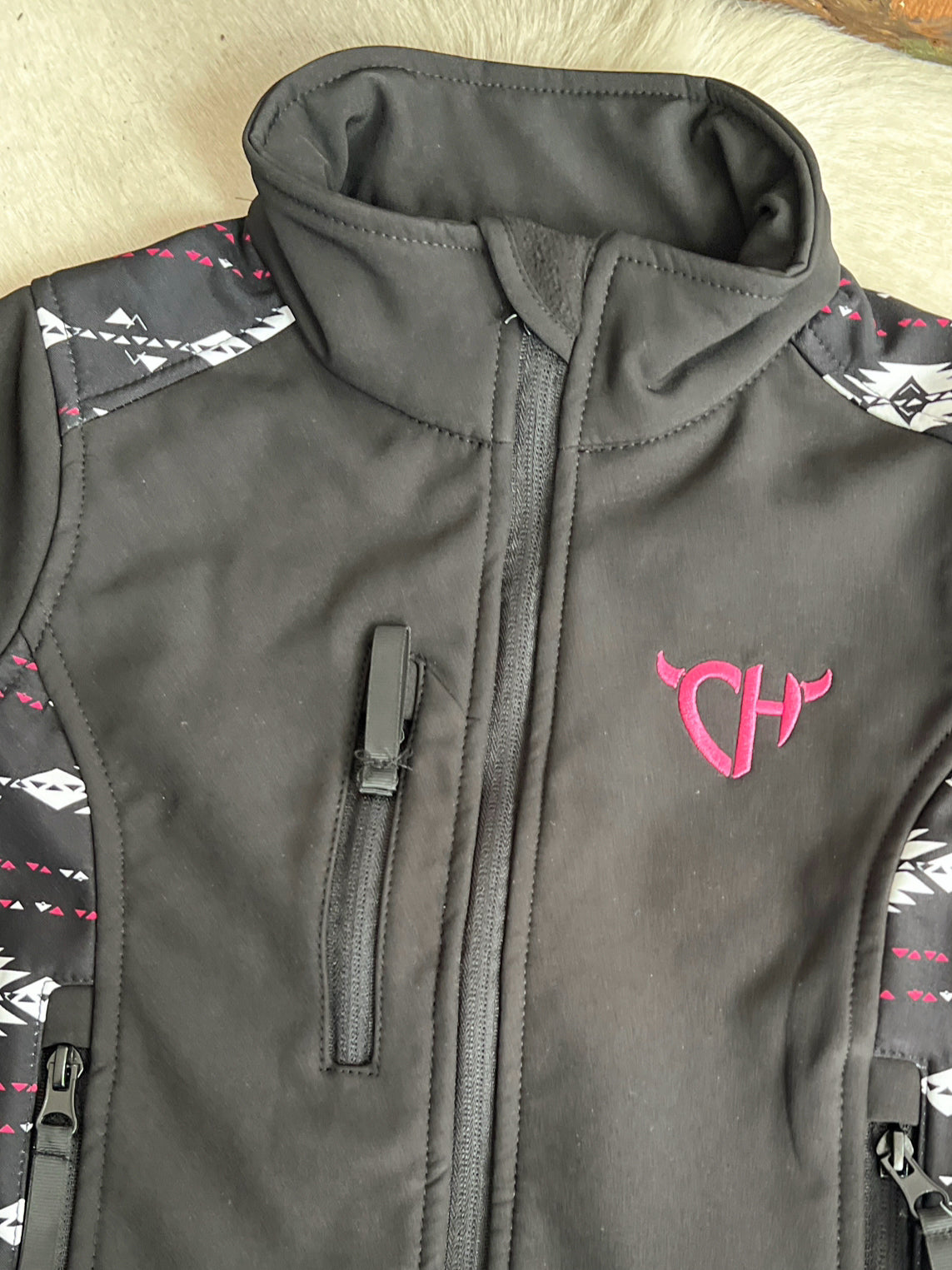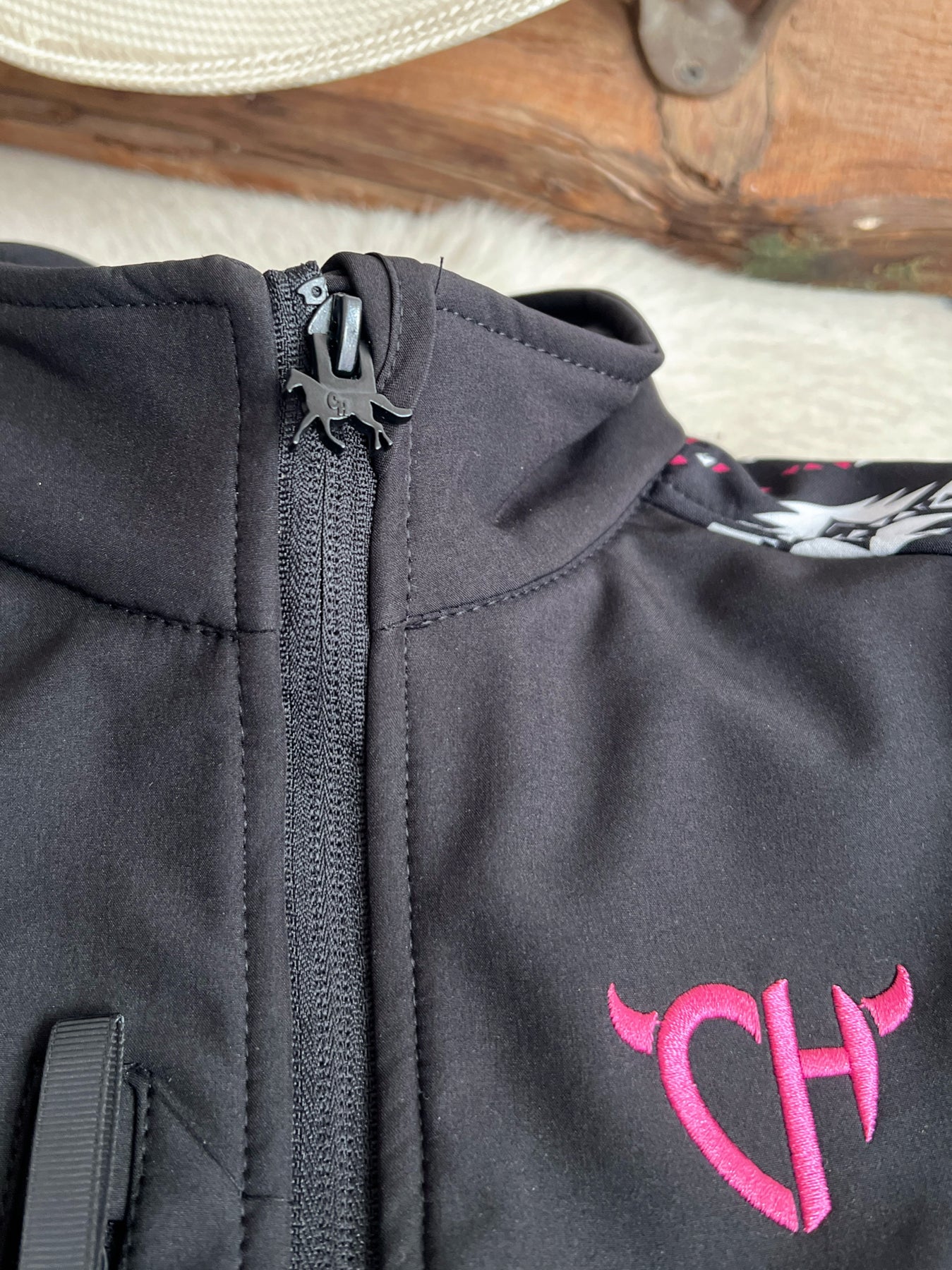 Stay warm and stylish this winter with our Kid's Tonal Accent Poly Shell Jacket. Made with high quality materials, this jacket features a cozy fleece lining and insulation to keep your little ones snug. The pink accents and embroidered logo add a western touch, while the pockets provide convenience. Perfect for any young cowboy or cowgirl!