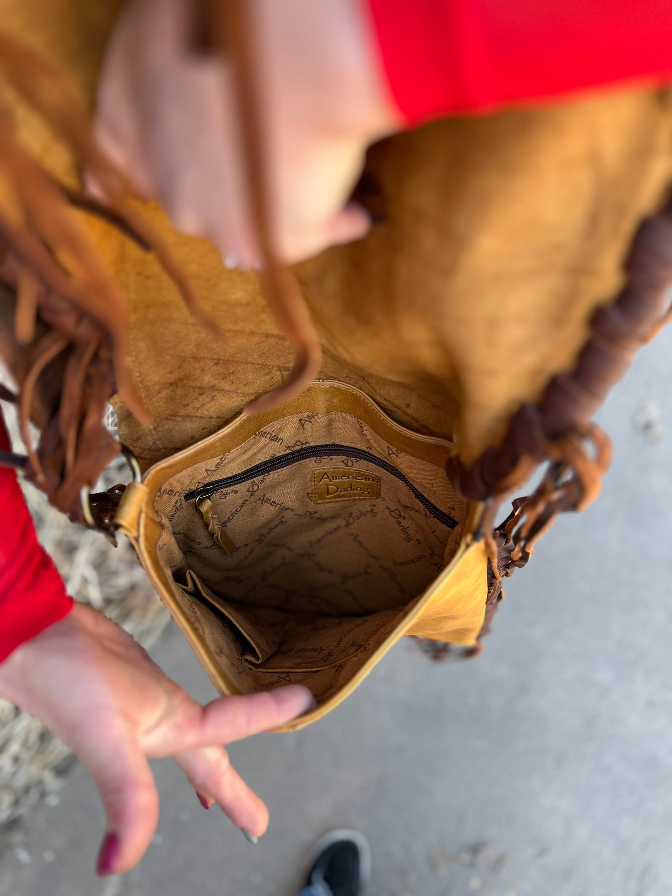 American Darling Leather Flap Whip Stitch and Fringe Bag