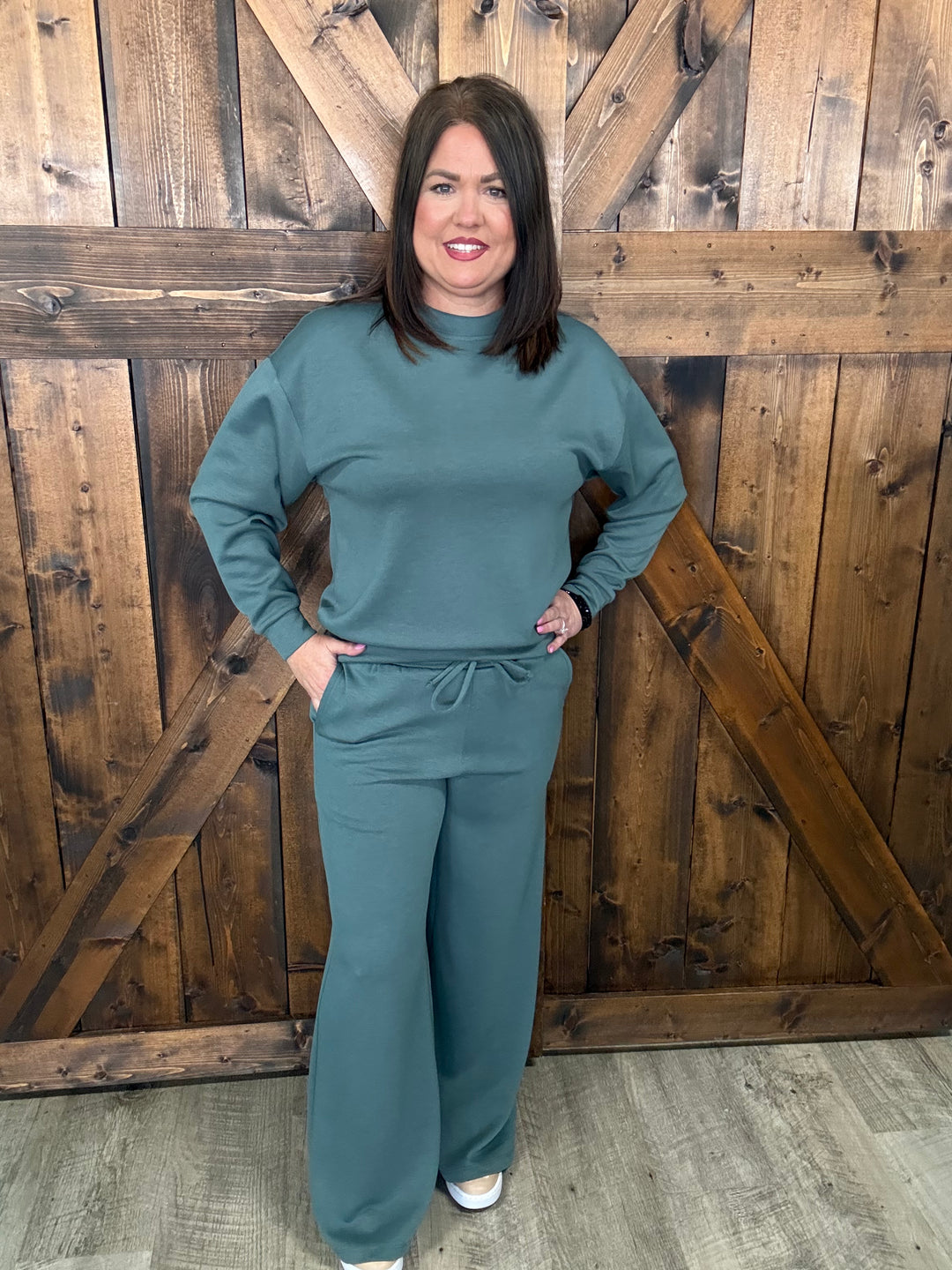 Zenana Ash Jade Scuba Crewneck Sweat Set