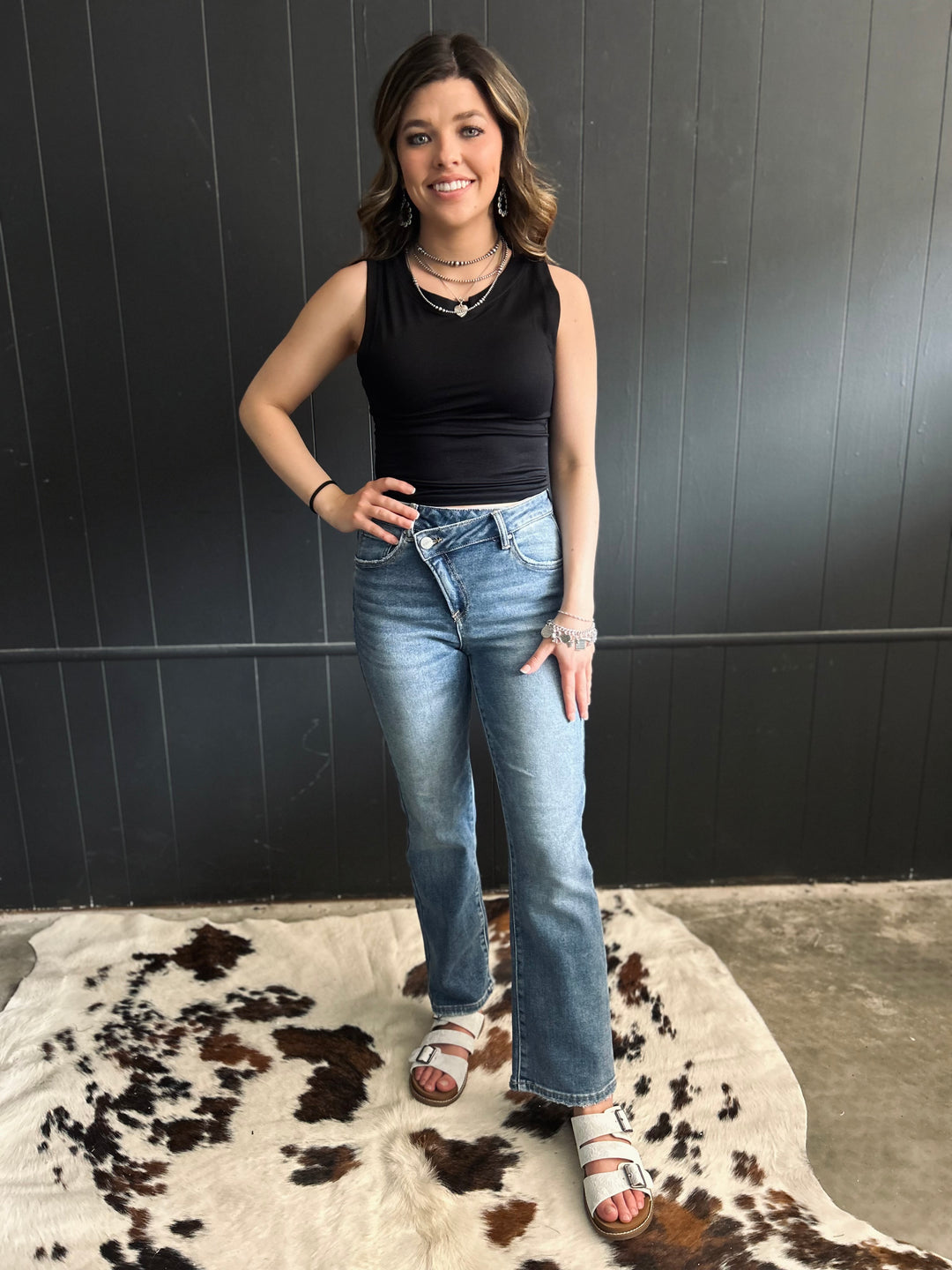 Distressed Tummy Control Denim Shorts - 2 Colors*
