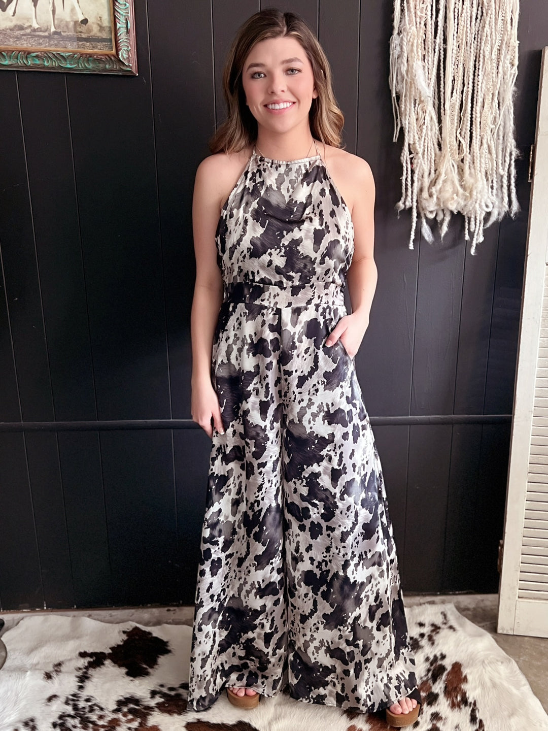 Black And White Open Back Wide Leg Jumpsuit*