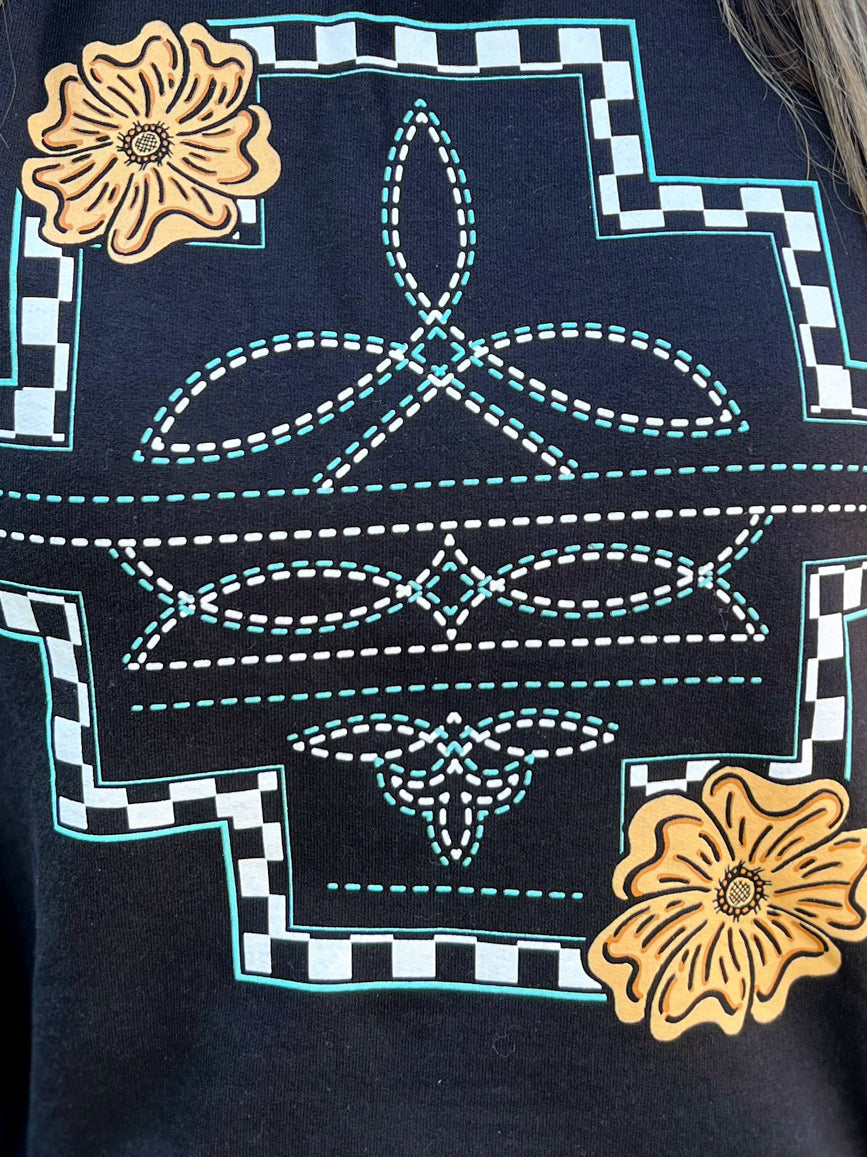 Feel trendy and chic with our Little Country Little Hood Pullover! Featuring a checked aztec graphic, viral bootstitch, and two tooled leather flowers, this Gildan pullover is the perfect balance of style and comfort. Get ready to turn heads with this effortlessly cool piece!