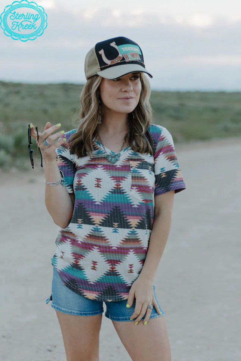 Experience the ultimate comfort and style with our PLUS Southern Belle Top! Made from ribbed fabric, this top features a stunning aztec print and a convenient front pocket. Perfect for any occasion, it's the perfect blend of fashion and functionality. Order now and elevate your wardrobe today!