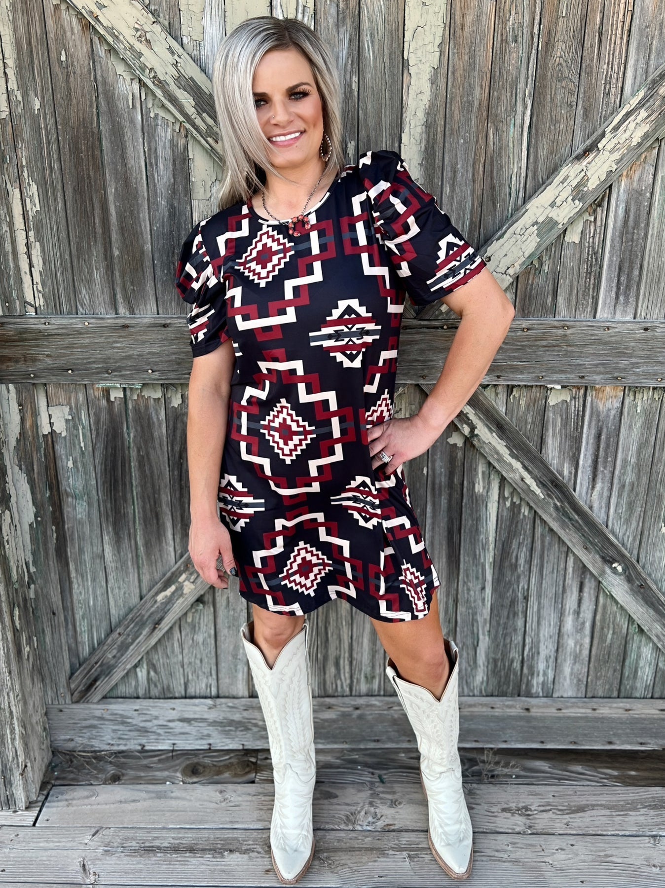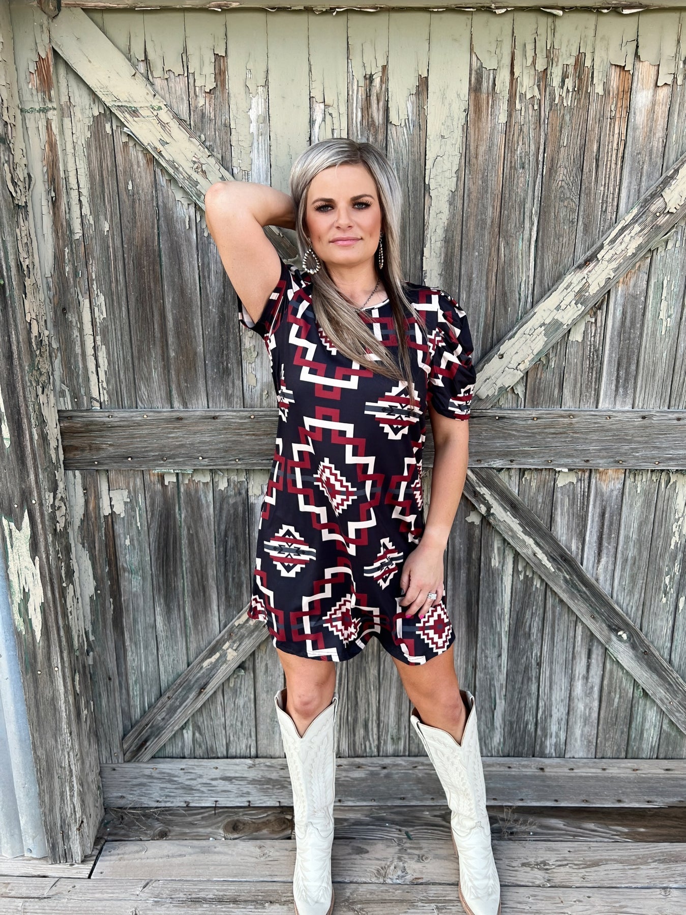 Get ready to rock the party with the Raiderland Dress! This black dress features a playful white and red design with bubble short sleeves, perfect for showing off your unique style. Whether you're hitting the town or taking over the dance floor, this dress is sure to make a statement!