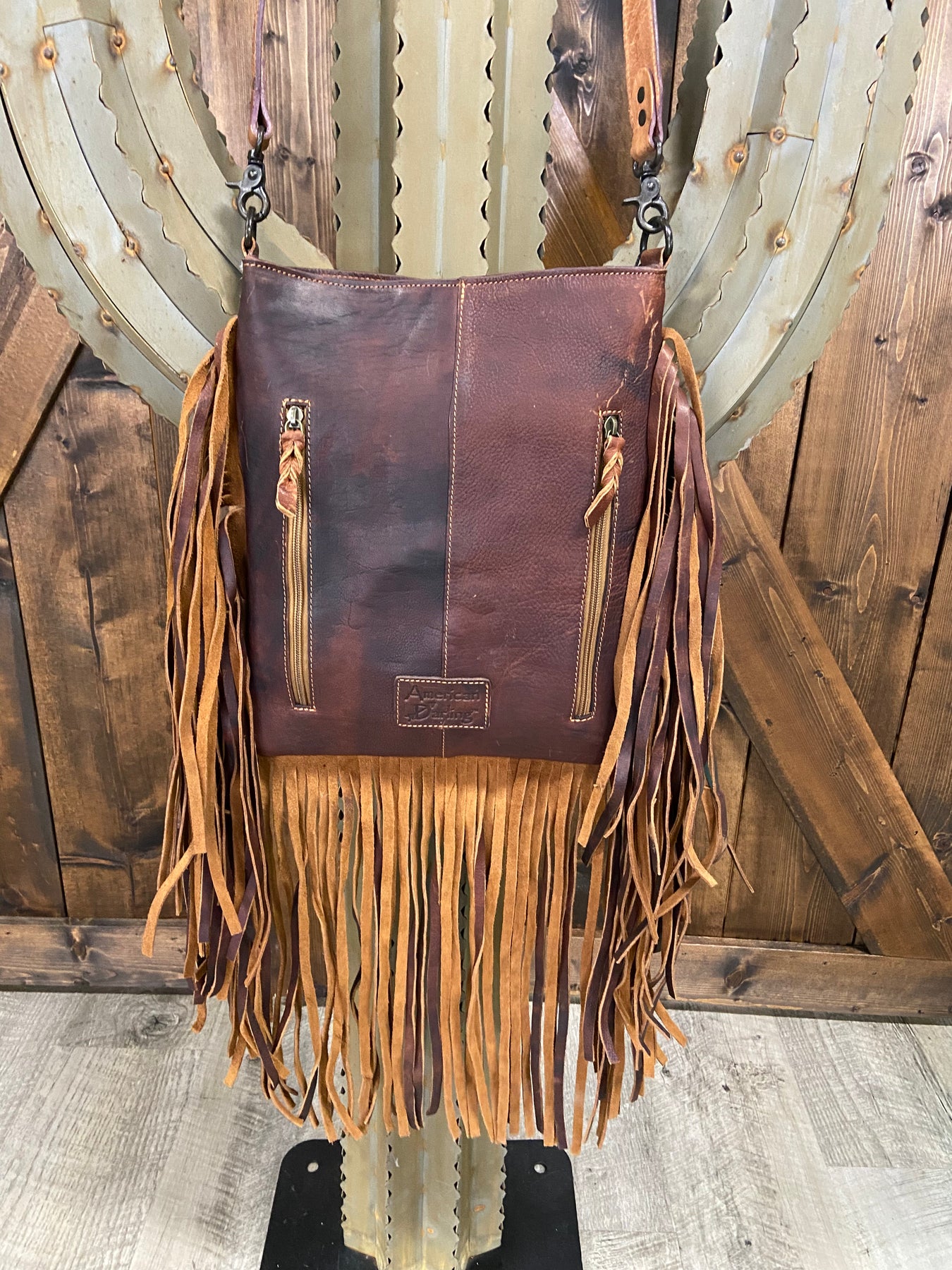 American Darling Etched Genuine Leather & Cowhide Fringe Crossbody I Gussied Up Online Boutique